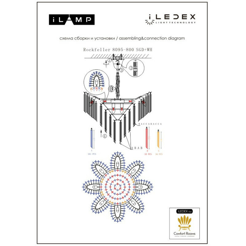 Производитель ILamp оснастил эту модель лампами с цоколем E14 и максимальной мощностью 40 Ватт.