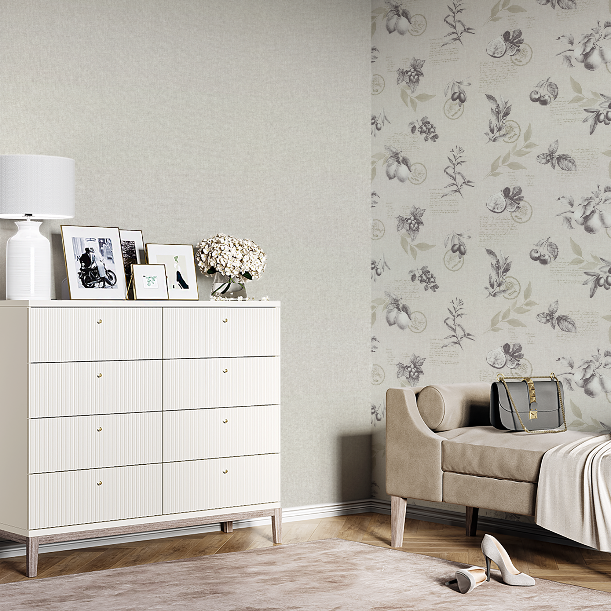 **Обратите внимание на номер партии обоев: рулоны из разных партий могут различаться оттенком. Если партии не хватает на все стены, оклейте каждую стену одной партией.**
