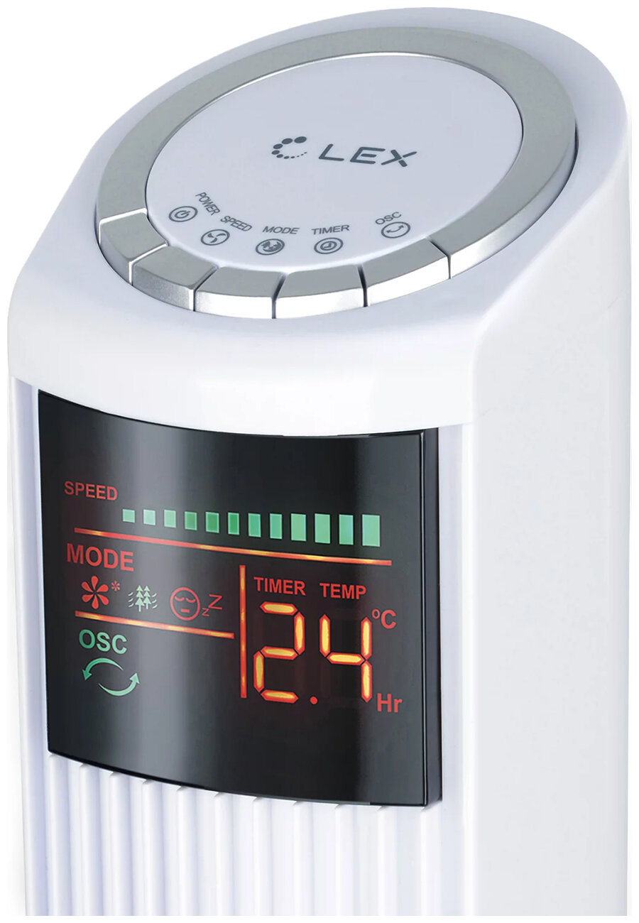 Один из самых высоких на рынке вентилятор колонного типа, высотою 117 см подойдет как для дома, офиса, так и для дачи. Удобное и простое управление с пультом ДУ, устойчивое основание, отличная мощность 55 Вт – что еще надо, чтобы насладиться прохладным ветерком в знойный день? Встроенный таймер с диапазоном от 0,5 до 7,5 часов в сочетании с 3 скоростными режимами скорости и 3 авторежимами, позволят настраивать максимально комфортные время и степень охлаждения помещений. Для более равномерного распределения воздушных потоков предусмотрен механизм поворота корпуса на 90 градусов. Если вы боитесь простудиться под кондиционером, напольный вентилятор колонного типа — лучший вариант. Информативный LED дисплей точно отображет все настройки для создания комфорта и уюта. Стильный дизайн станет гармоничным дополнением самого изысканного интерьера.