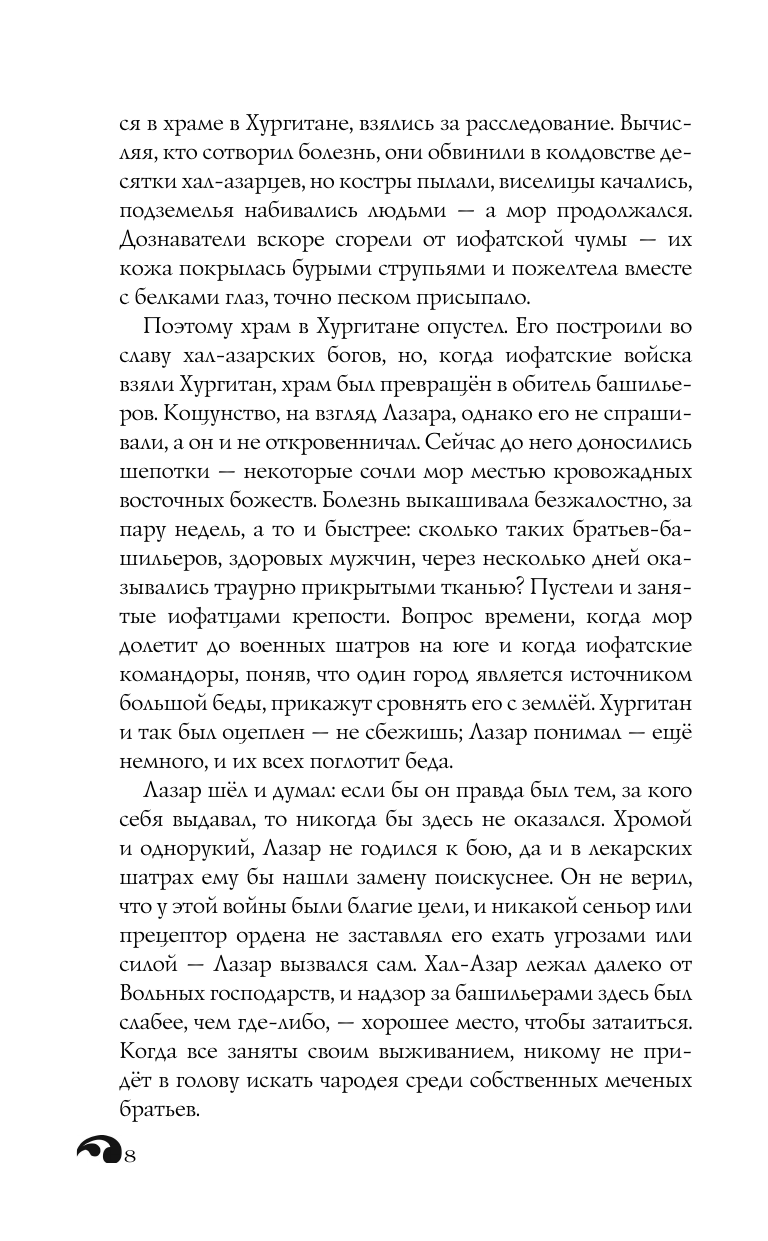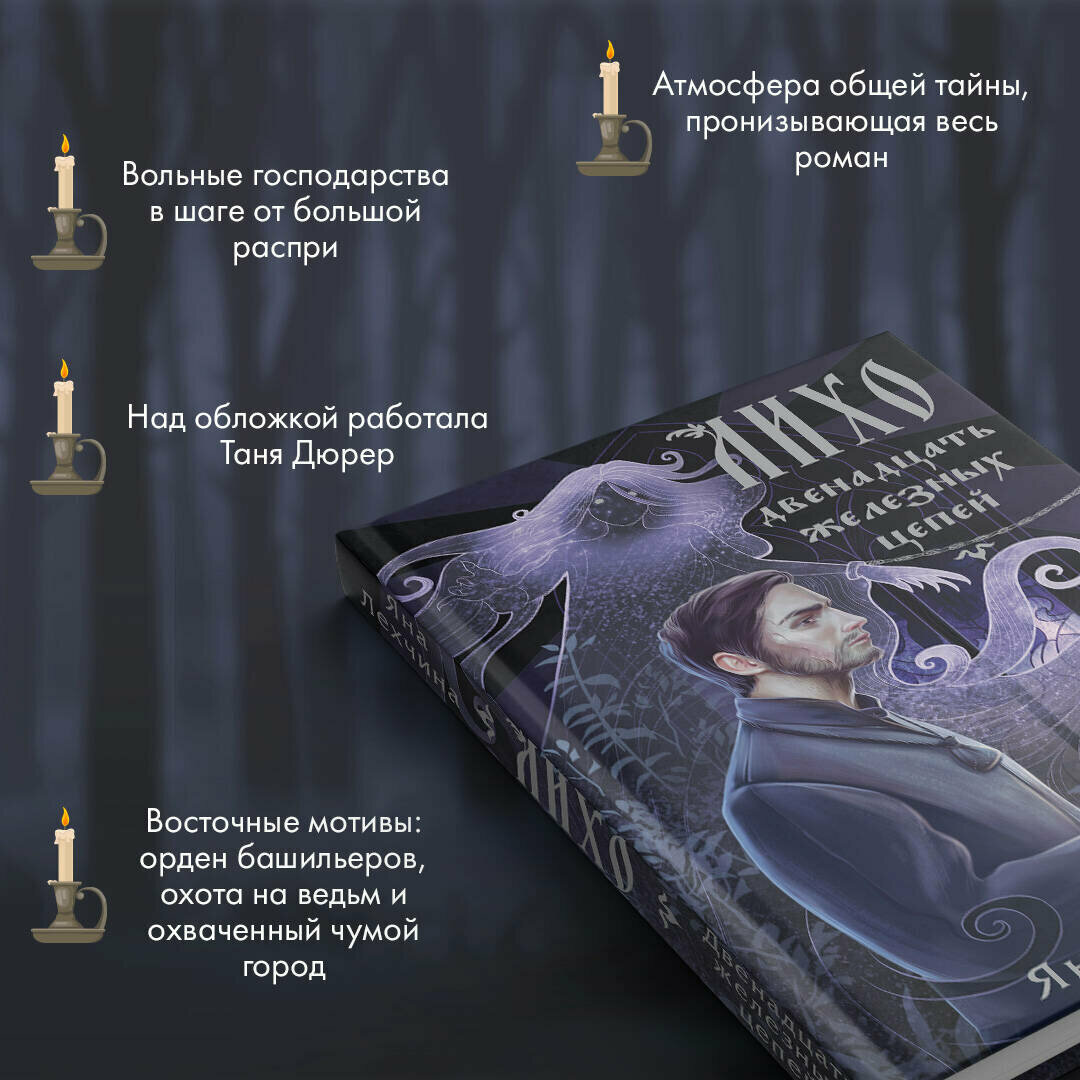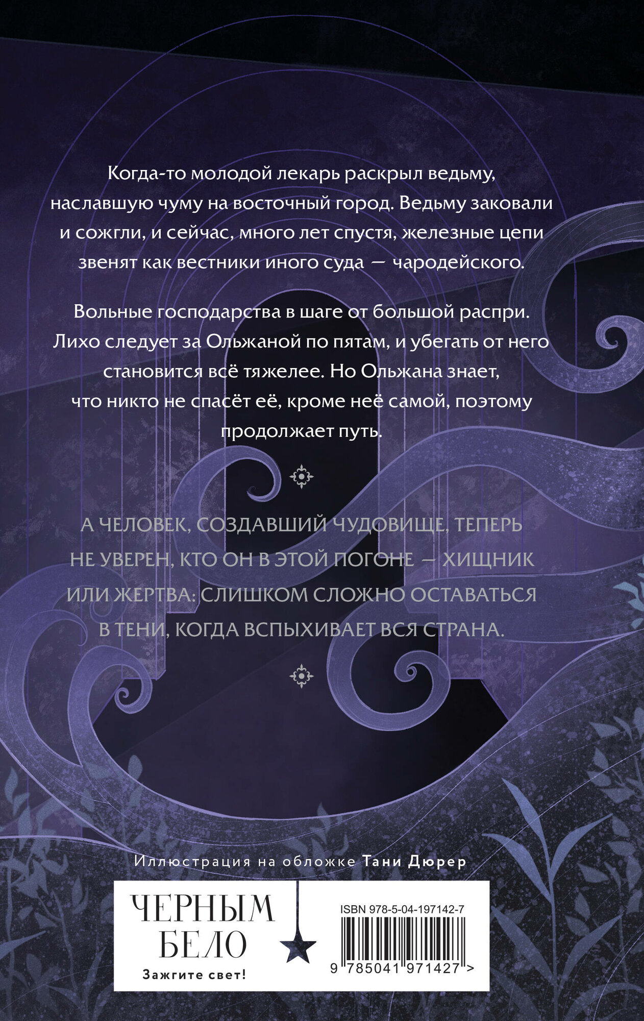 Когда-то молодой лекарь раскрыл ведьму, наславшую чуму на восточный город. Ведьму заковали и сожгли, и сейчас, много лет спустя, железные цепи звенят как вестники иного суда - чародейского. Вольные господарства в шаге от большой распри. Лихо следует за Ольжаной по пятам, и убегать от него становится все тяжелее - но Ольжана знает, что никто не спасет ее, кроме нее самой, поэтому продолжает путь. А человек, создавший чудовище, теперь не уверен, кто он в этой погоне - хищник или жертва: слишком сложно оставаться в тени, когда вспыхивает вся страна. Вторая часть трилогии "Лихо" - славянского фэнтези с темным колоритом от автора популярных фэнтези-романов "Год Змея" и "Змеиное гнездо" Яны Лехчиной. В сюжет основных глав вплетены восточные мотивы: орден башильеров, охота на ведьм и охваченный чумой город, который вот-вот падет. Темные часовни, пустые дороги, дождливые вечера - атмосфера общей тайны, пронизывающая весь роман. Иллюстрация на обложке талантливой Тани Дюррер.