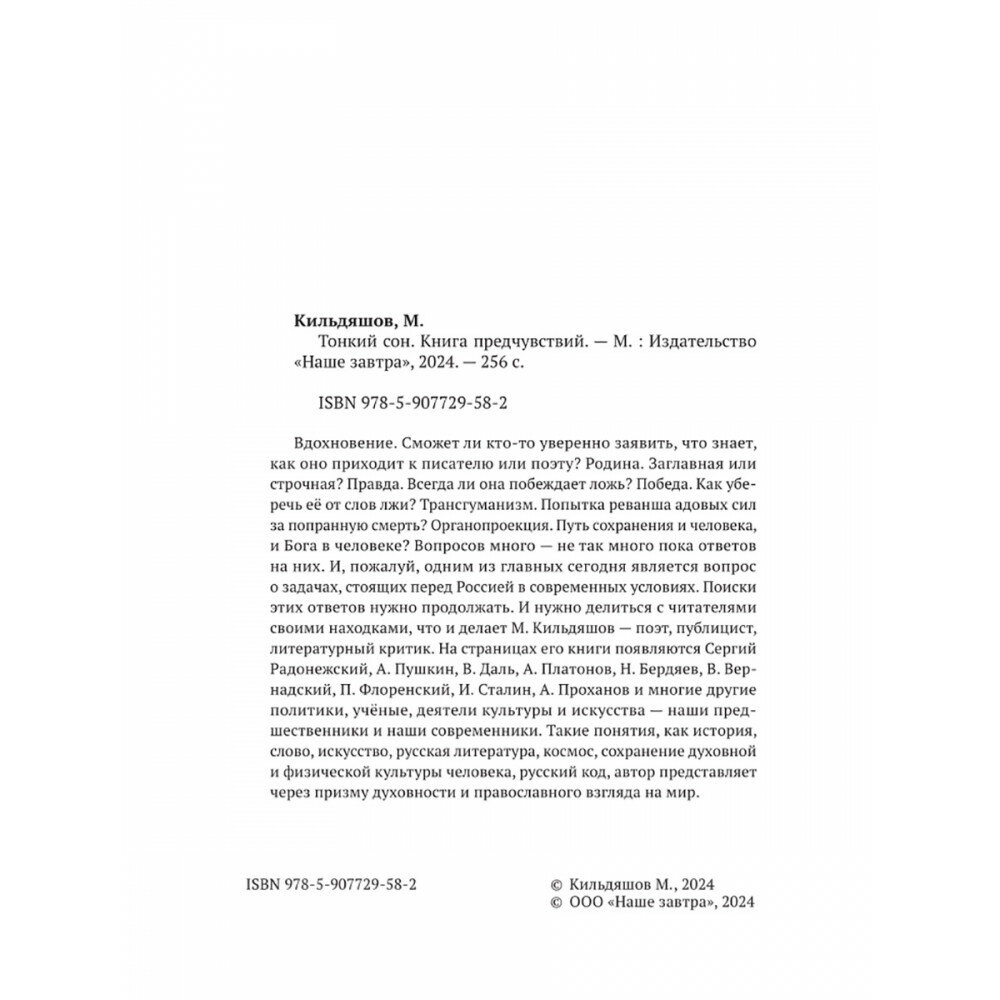 Тонкий сон. Книга предчувствий (Михаил Александрович Кильдяшов); Наше Завтра, 2024