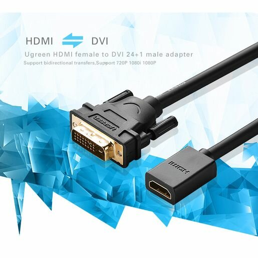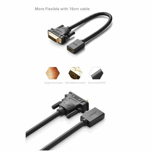 Адаптер UGREEN DVI Male to HDMI кабель 22см цвет: черный 20118