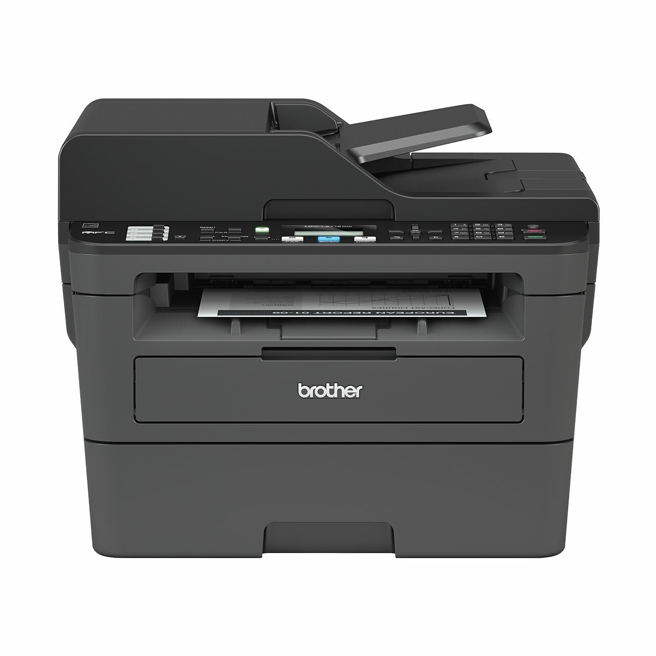 МФУ монохромное Brother А4 34 стр/мин 256 Мб дуплекс автоподатчик Ethernet USB Wi-Fi факсчб экран стартовый тонер. РМ: DR-2405 MFC-L2715DW