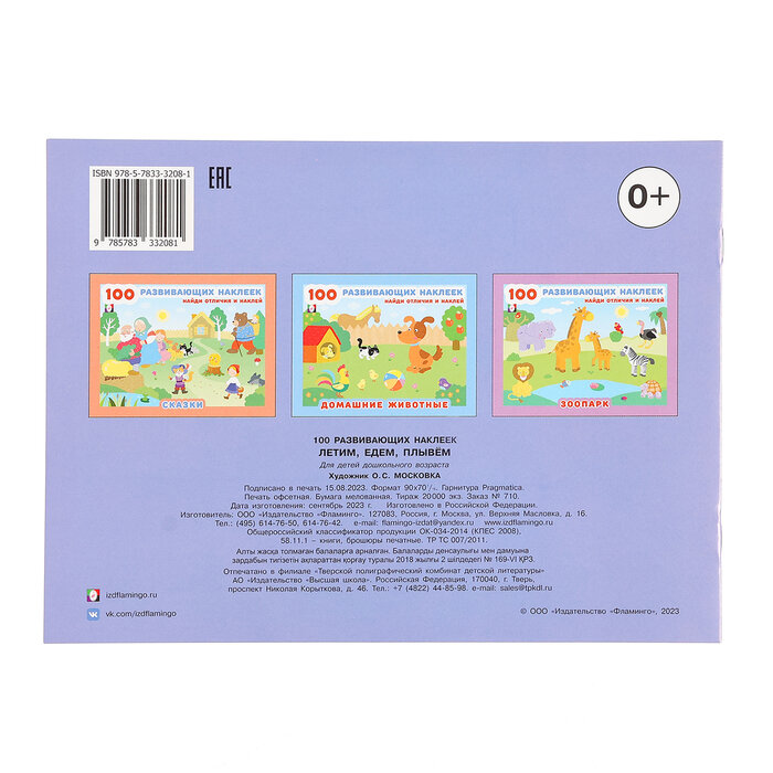 100 развивающих наклеек. Летим едем плывём Фламинго