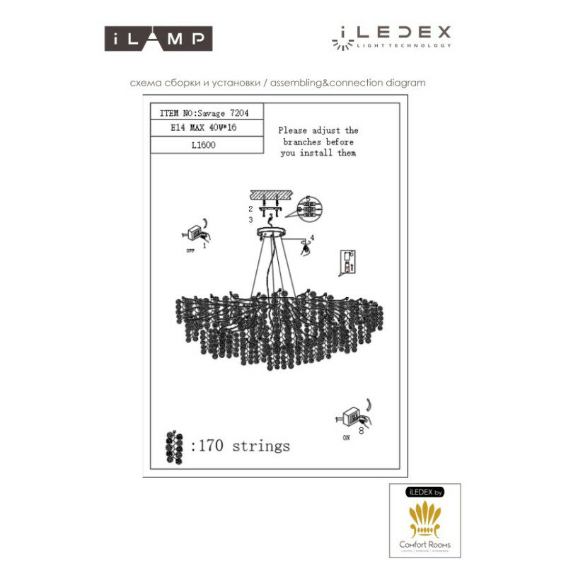 Бренд ILamp оснастил эту модель лампами с цоколем E14 и максимальной мощностью 40 Ватт.