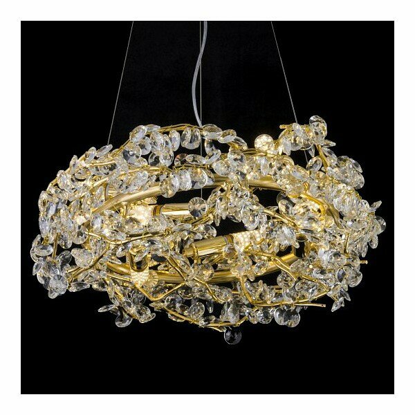 Люстра подвесная от компании iLamp коллекции Savage прекрасно впишется в интерьер и может стать гармоничным дополнением к вашему стилю оформления. Например отлично подойдет для спальни в флористическом стиле. Люстра подвесная флористика формы имеет размеры: 600х600х300 мм. Вес: 9,7 кг. Количество ламп: 8 шт. общей мощностью 320 Вт. Используются лампы с цоколем E14. Прибор произведен с использованием материала: алюминий. В плафоне используются материал: стекло. Основным цветом светильника является золотой. Плафон имеет прозрачный цвет. Параметры пылевлагозащиты IP20. Гарантия производителя 5 лет. Люстра подвесная имеет простой и удобный монтаж, что позволяет установить самостоятельно без особых усилий.