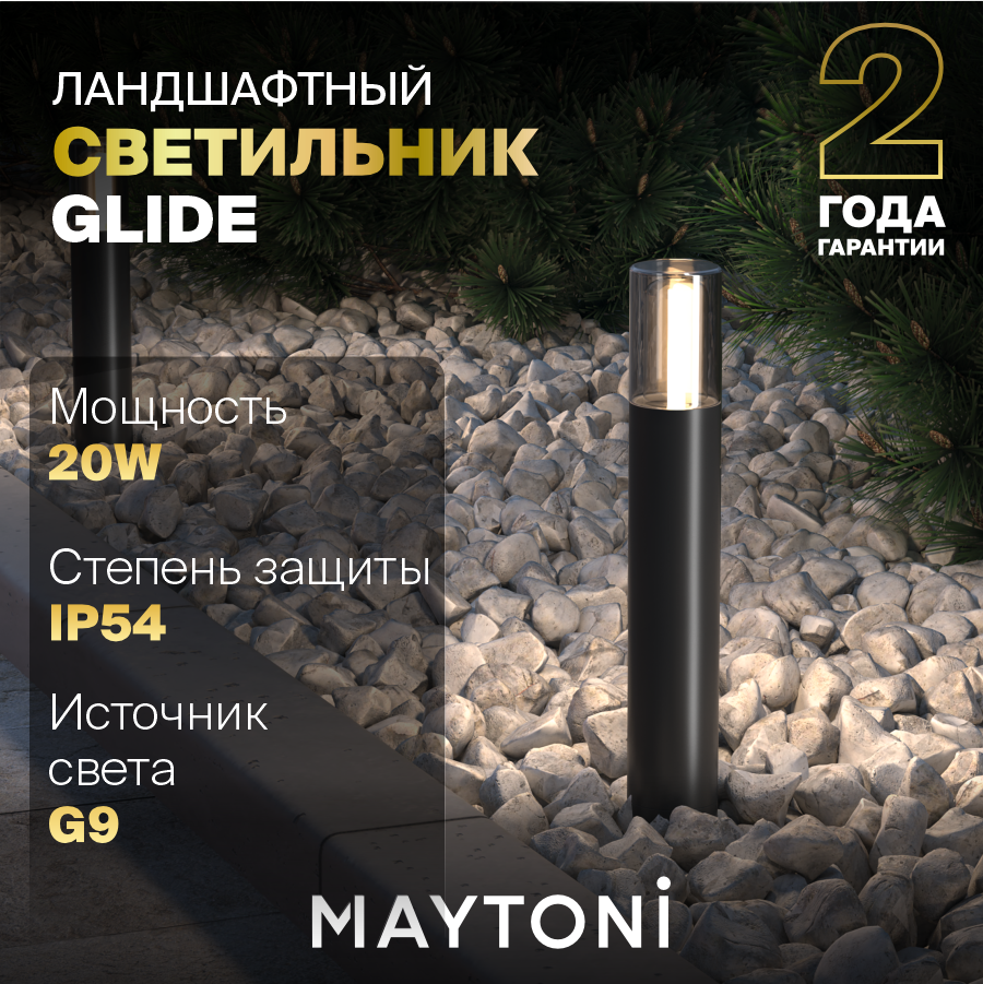 Материал корпуса – алюминий, цвет - графит. Плафон - прочное тонированное стекло. Источник света - лампа с цоколем G9. Серия для маркерной и декоративной подсветки дорожек и ландшафта. Степень защиты - IP54.