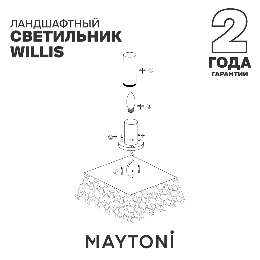 Бренд Maytoni оснастил данную модель лампами с цоколем E27 и максимальной мощностью 15 Ватт. Установив светильник, Вы получите оптимальное уличное освещение.