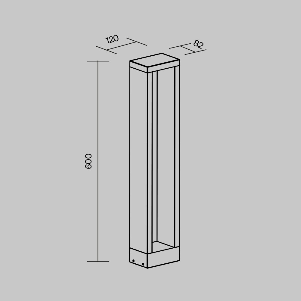 Светильник имеет размеры 60 см в высоту и 12 см в ширину, что позволяет его легко установить на улице. Арматура выполнена из металла и окрашена в серый графитовый цвет, что придает светильнику современный и стильный вид.