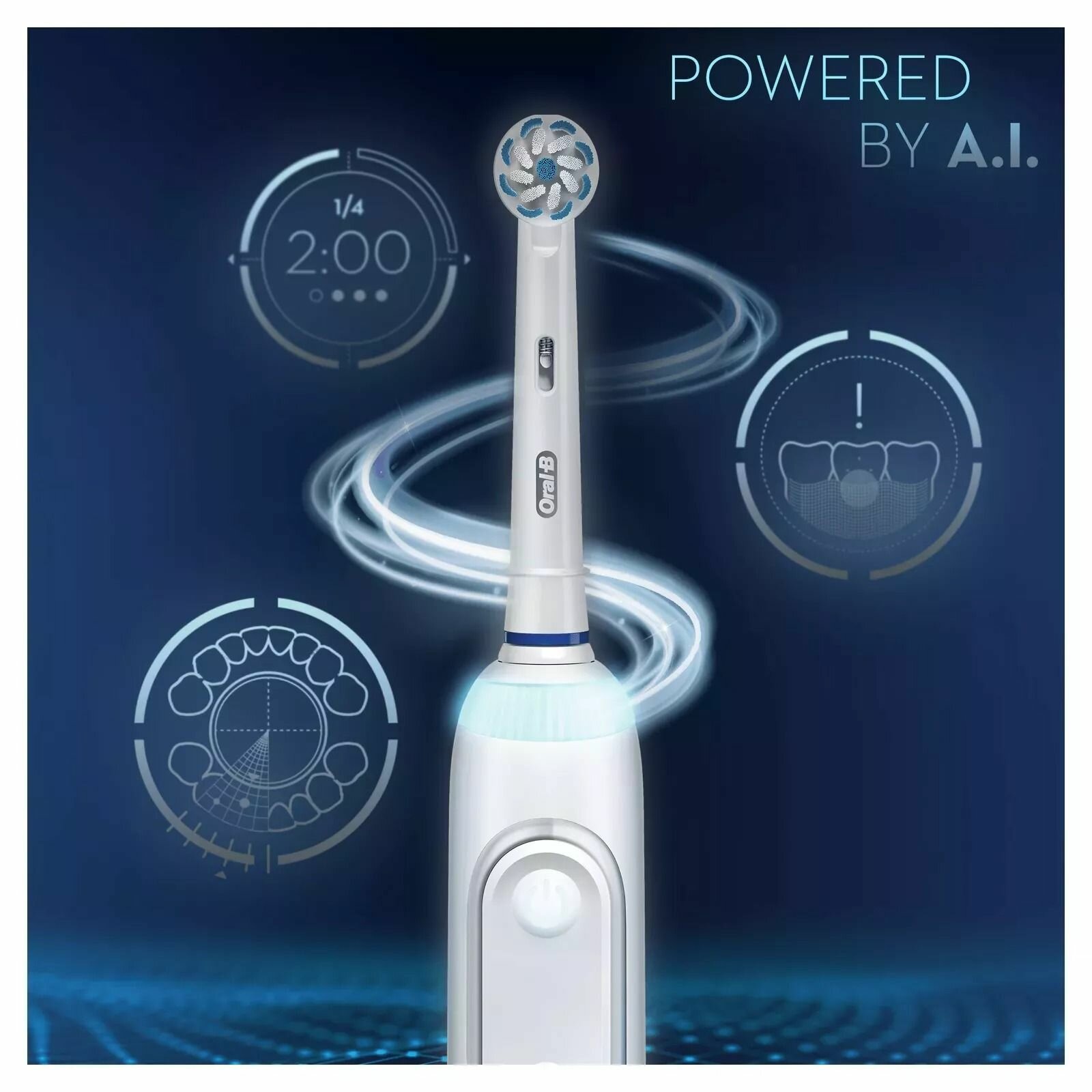 Электрическая зубная щетка Oral-B Genius X 20100S D706.514.6X, оснащенная функцией искусственного интеллекта, распознает ваш стиль чистки зубов и направит для наиболее эффективной очищения каждый день. Теперь вы можете легко ухаживать за полостью рта согласно рекомендациям стоматолога, обеспечивая превосходное очищение и улучшая состояние десен. Зубная щетка защищает чувствительные десны и помогает предотвратить дальнейшие проблемы: кольцо SmartRing 360º и датчик давления предупреждают вас и снижают скорость при чрезмерном давлении на щетку, а также сообщают, какие зоны вы чистите слишком сильно, позволяя сделать процедуру более бережной. Кроме того, эта электрическая зубная щетка оснащена литий-ионным аккумулятором, работающим более 2 недель без подзарядки. Особенности устройства: Механическая частота: 48 000 пульсирующих и 10 500 возвратно-поступательных движений в минуту Тип щетки: Возвратно-вращательная Число насадок в комплекте: 1 шт Число режимов работы: 6 Дорожный чехол Тип питания: Аккумулятор Емкость аккумулятора: 12 дней (при 2-х разовом использовании по 2 минуты) Тип аккумулятора: Li-Ion Время зарядки: 12 часов Датчик нажима на зубы Индикация заряда и разряда