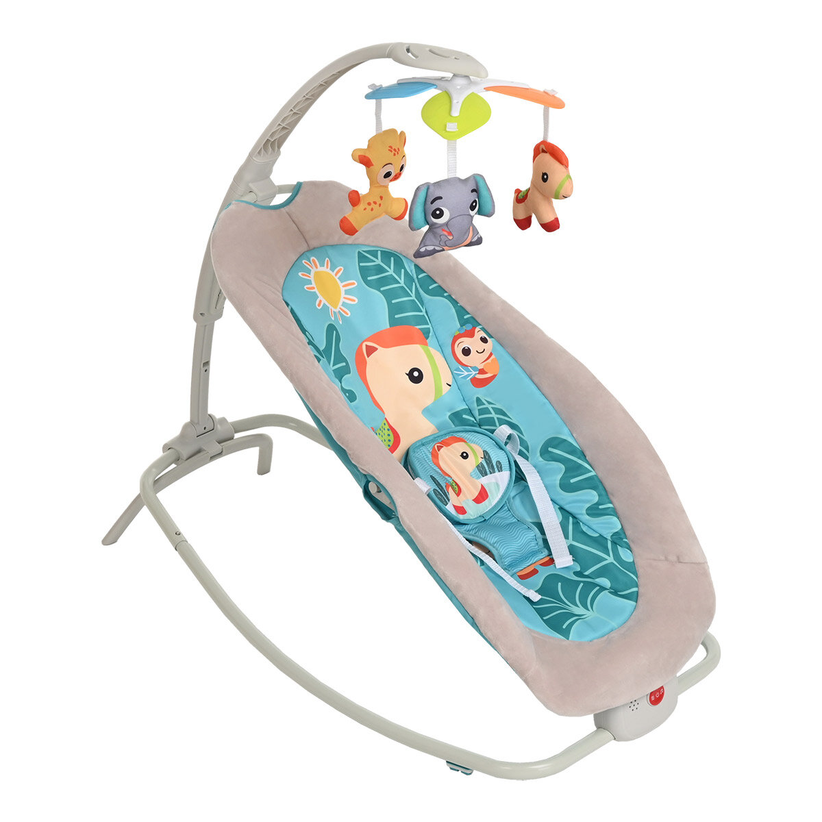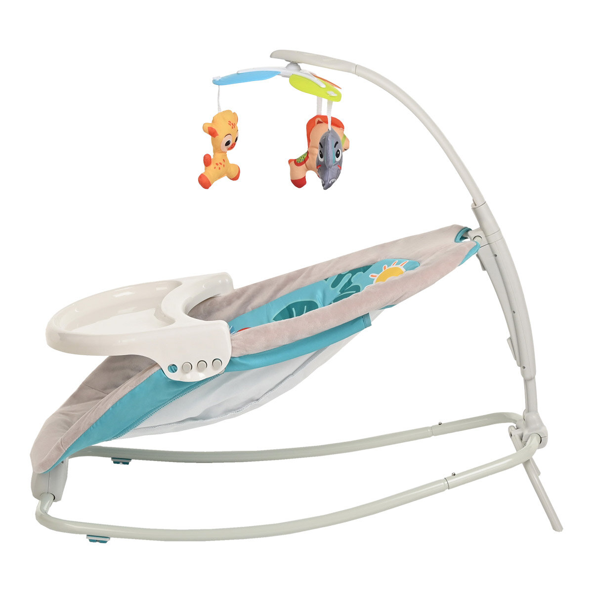 Шезлонг детский Pituso белый бежевый бирюзовый Шезлонг Lino Дружок