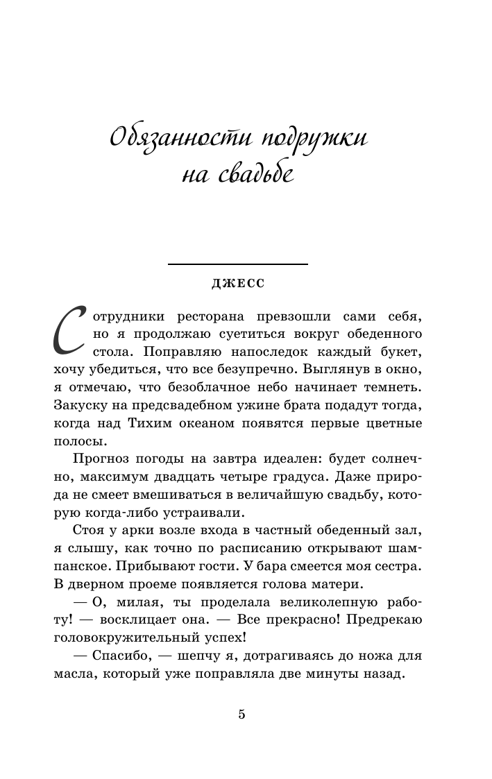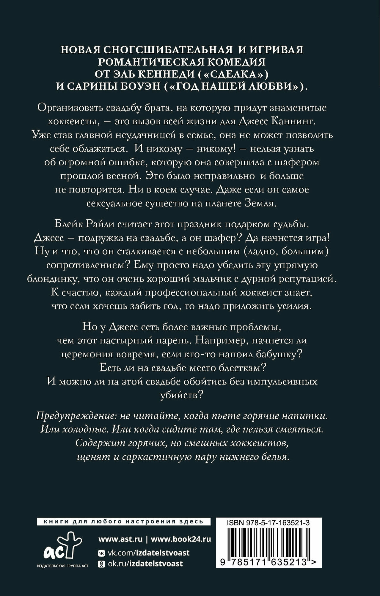 Организовать свадьбу брата, на которую придут знаменитые хоккеисты, — это вызов всей жизни для Джесс Каннинг. Уже став главной неудачницей в семье, она не может позволить себе облажаться. И никому — никому! — нельзя узнать об огромной ошибке, которую она совершила с шафером прошлой весной. Это было неправильно и больше не повторится. Ни в коем случае. Даже если он самое сексуальное существо на планете Земля.Блейк Райли считает этот праздник подарком судьбы. Джесс — подружка на свадьбе, а он шафер? Да начнется игра! Ну и что, что он сталкивается с небольшим (ладно, большим) сопротивлением? Ему просто надо убедить эту упрямую блондинку, что он очень хороший мальчик с дурной репутацией. К счастью, каждый профессиональный хоккеист знает, что если хочешь забить гол, то надо приложить усилия.Но у Джесс есть более важные проблемы, чем этот настырный парень. Например, начнется ли церемония вовремя, если кто-то напоил бабушку? Есть ли на свадьбе место блесткам? И можно ли на этой свадьбе обойтись без импульсивных убийств?