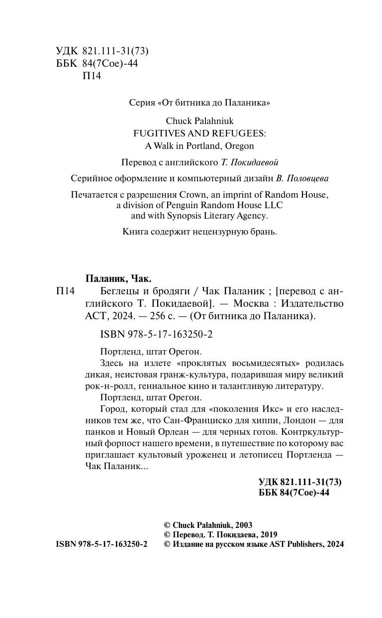 Книга: Беглецы и бродяги (Чак Паланик); АСТ, 2024