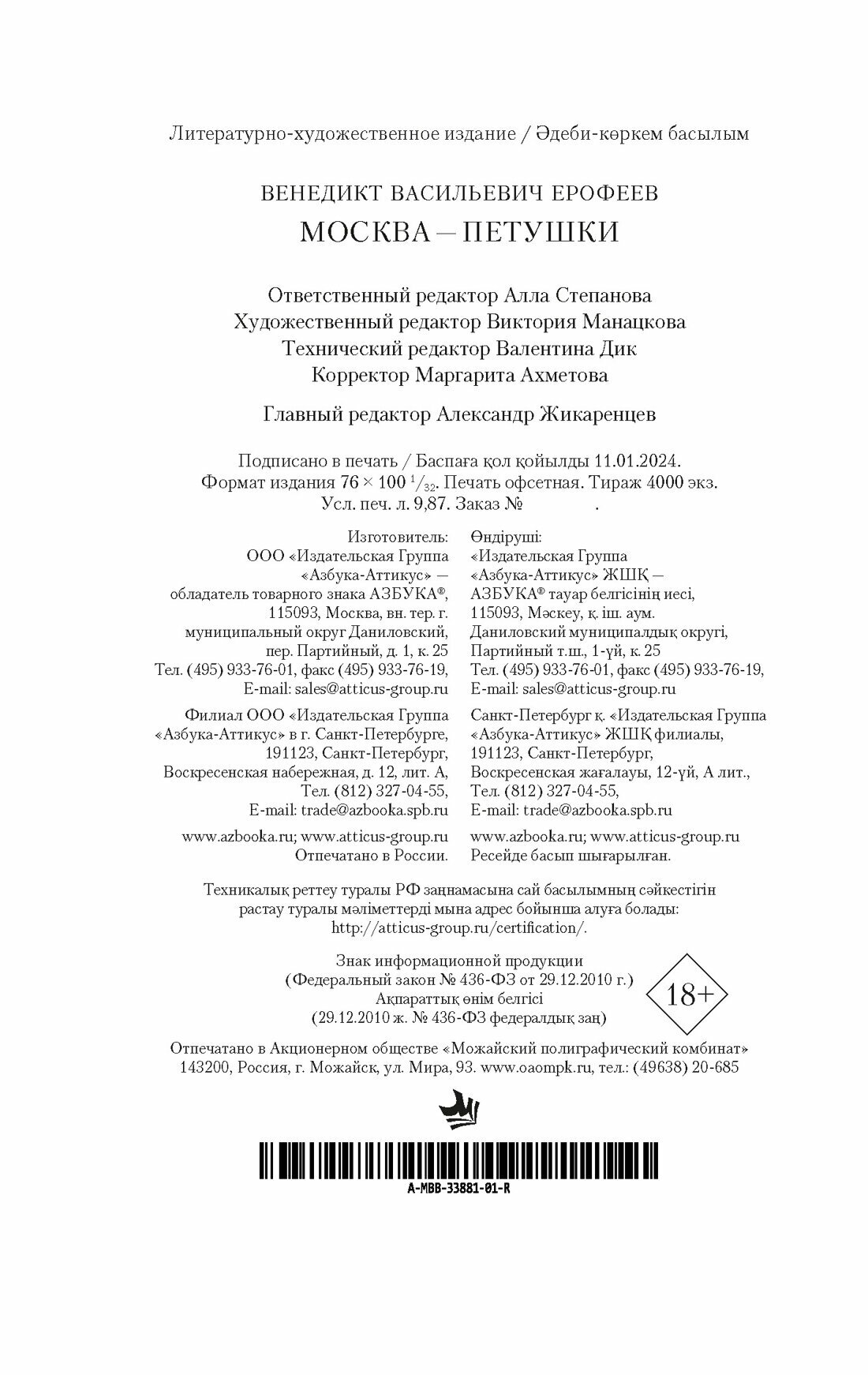 Книга: Москва – Петушки (Венедикт Васильевич Ерофеев); Азбука, 2025