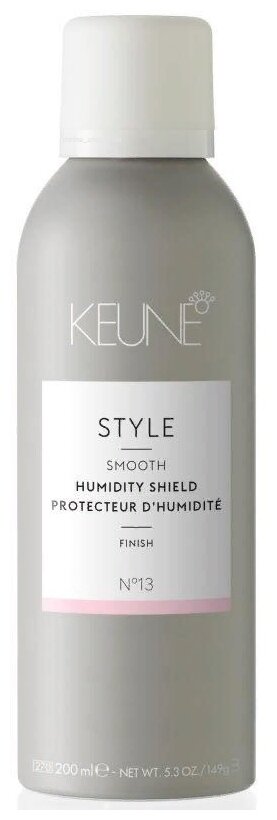 Keune Style Smooth Спрей для защиты от влаги Humidity Shield №13 (1 - степень фиксации, 3 - уровень блеска) - легкий невесомый завершающий спрей для волос. Удерживает волосы от пушистости при влажности на 24 часа. Новый аромат, содержит УФ фильтр.