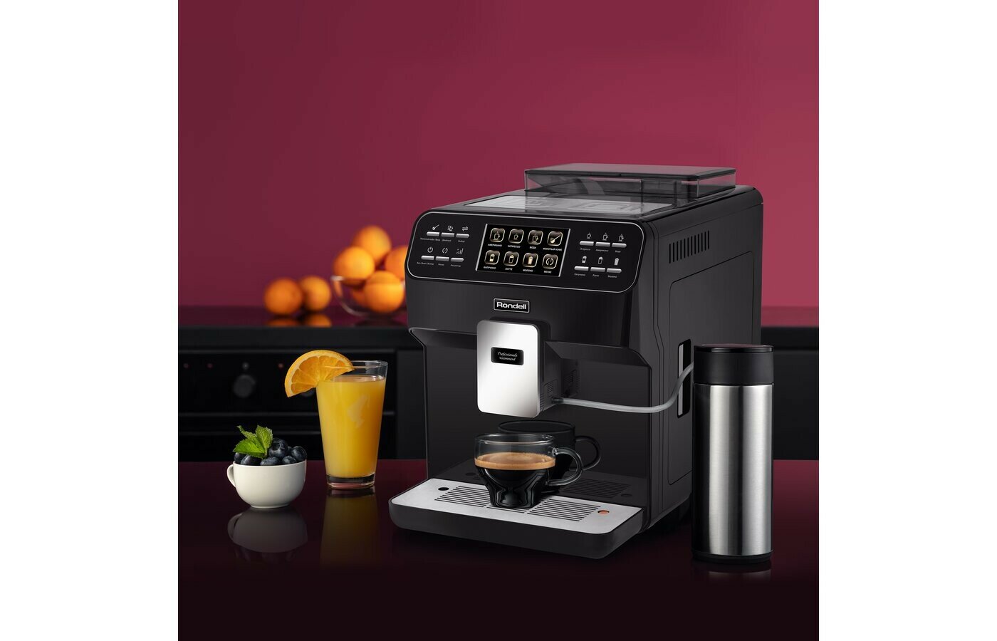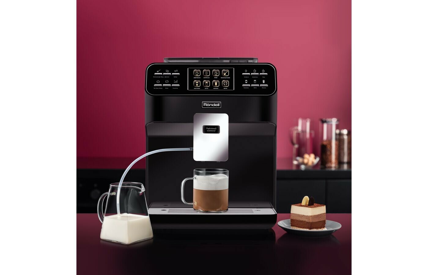 Автоматическая кофемашина RDE-1112 от Rondell с максимальной мощностью 1500 Вт - прибор, позволяющий каждому почувствовать себя настоящим бариста! Причем приобретать специальные навыки для этого не придется: американо, капучино, латте, молочная пенка готовятся нажатием одной кнопки. Вся информация о выбранном действии отражается на цветном TFT-дисплее с диагональю 3,5 дюйма.