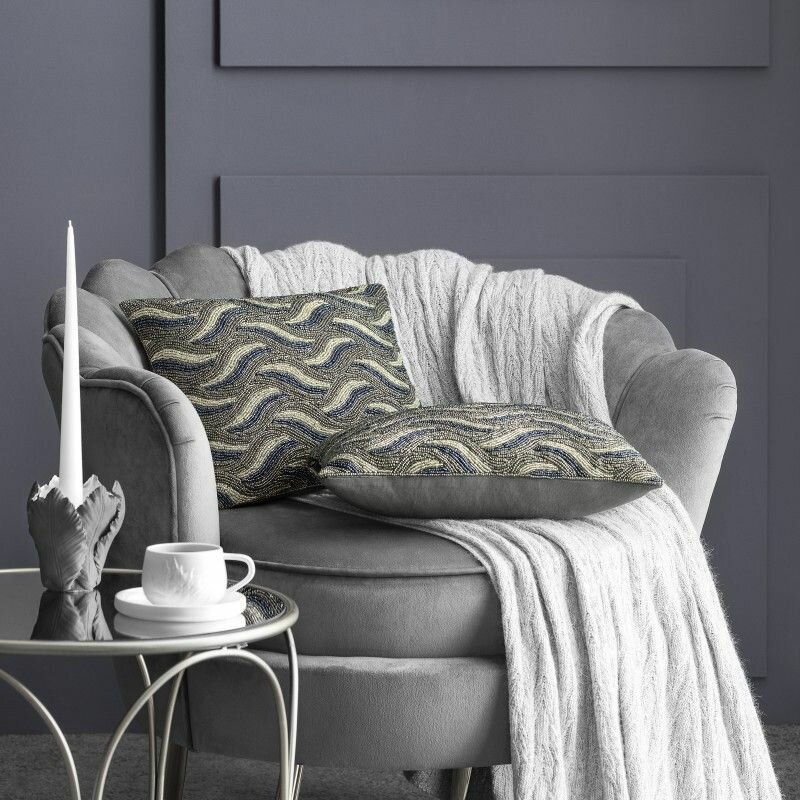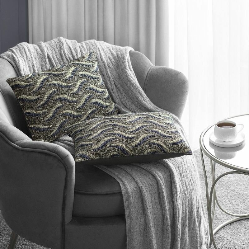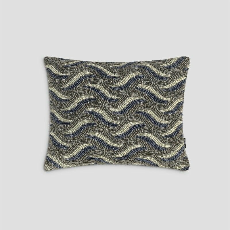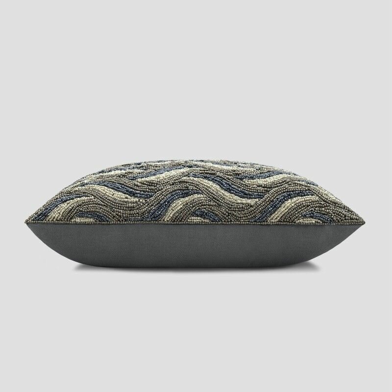 Хлопковая декоративная подушка с вышивкой бисером, выполненной вручную.