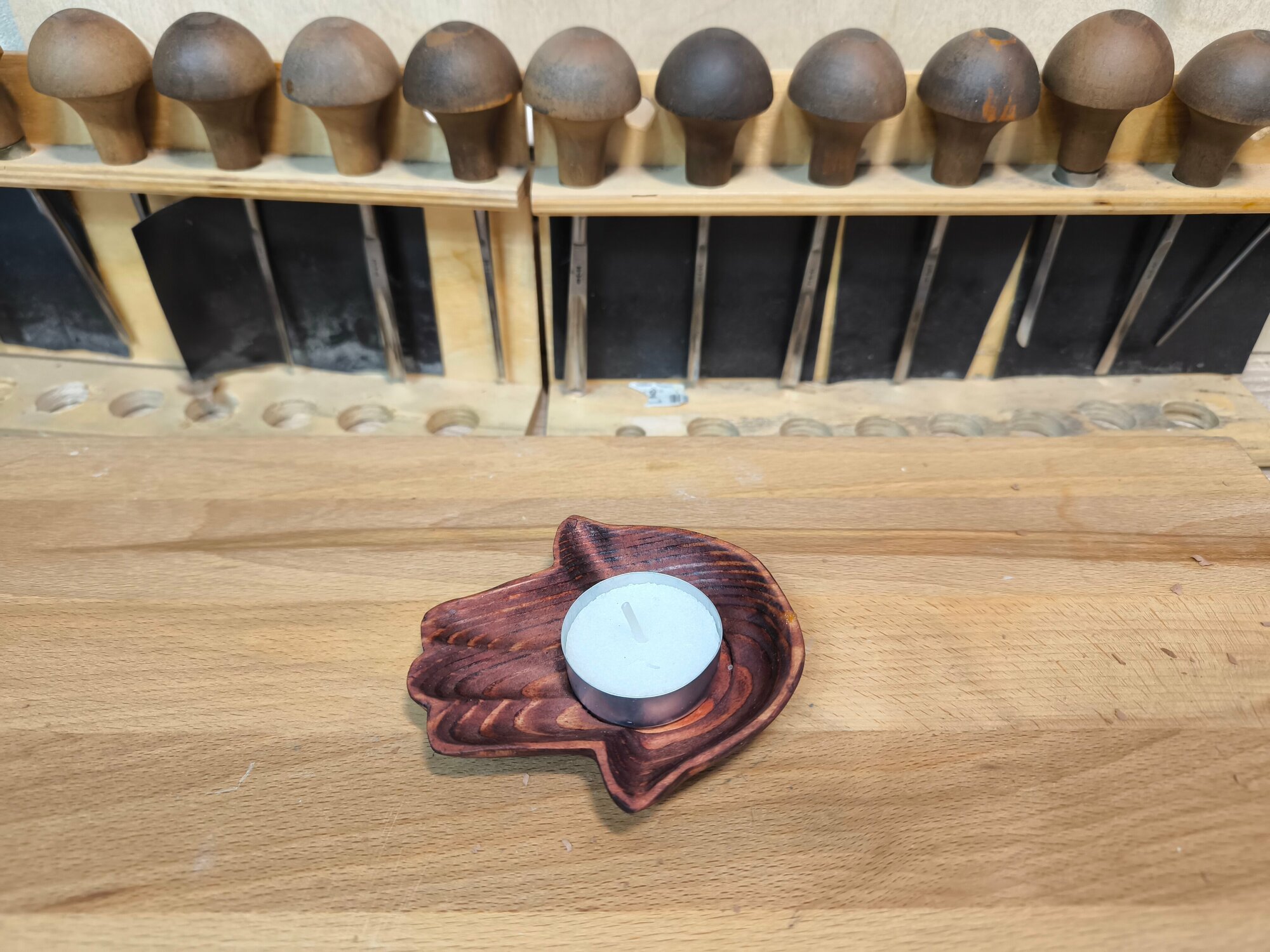 Подсвечник "Socline" из дерева с резьбой в виде фигуры Хамса Pure in