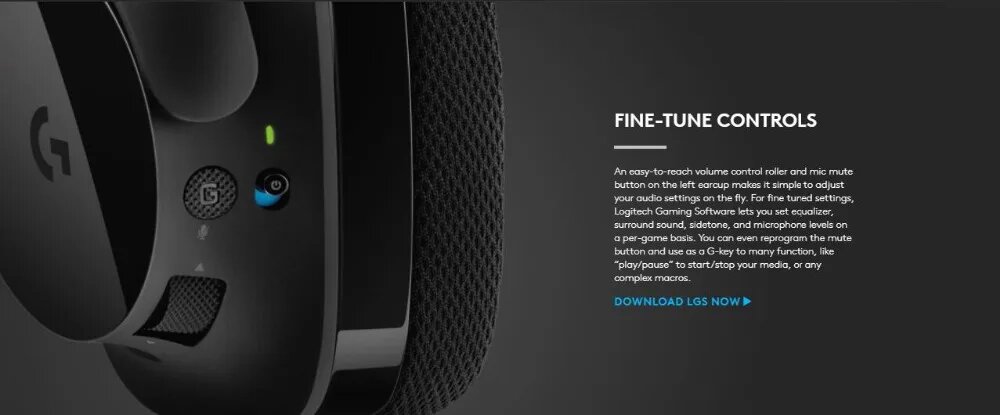 Наушники Logitech G533 обеспечивает качественную и надежную передачу звука на расстоянии до пятнадцати метров независимо от электромагнитных помех и наличия других источников сигнала. Устройство выполнено в минималистском дизайне и не имеет светодиодов. В конструкции преобладают плавные линии без угловатости, характерной для предыдущих моделей. Из элементов управления только кнопка включения и выключение, регулировка звука и одна программируемая клавиша.