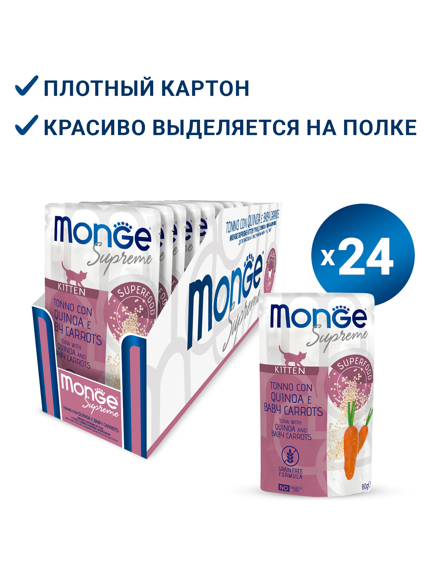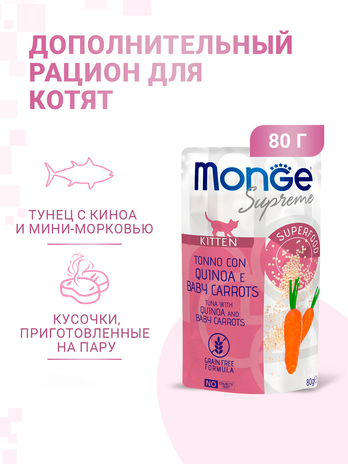 Monge Kitten Влажный корм (пауч) для котят тунец киноа и мини-морковь 80 гр.