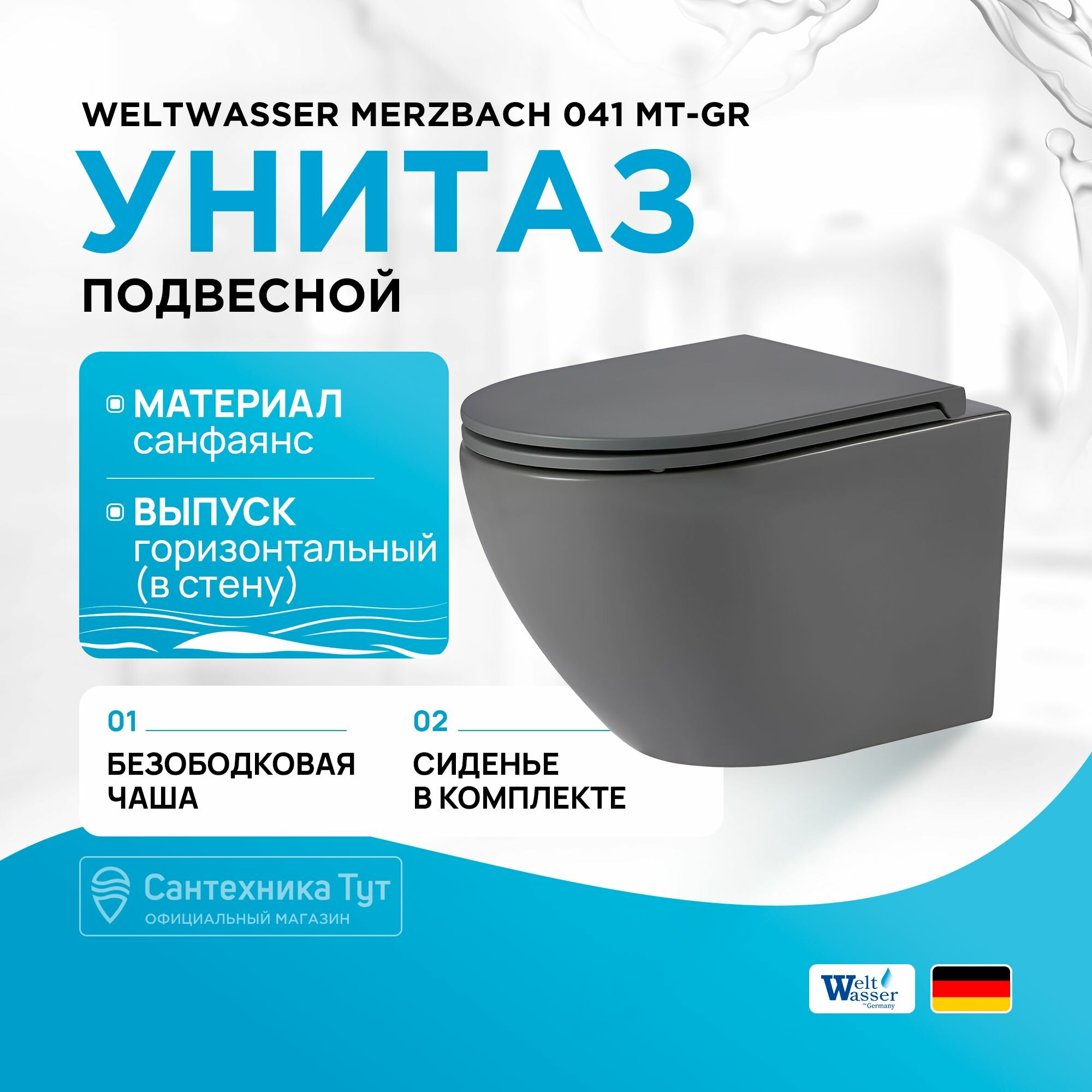 Модель: WW MERZBACH 043 GL-BL безободковый, с сиденьем микролифт, черный глянцевый
