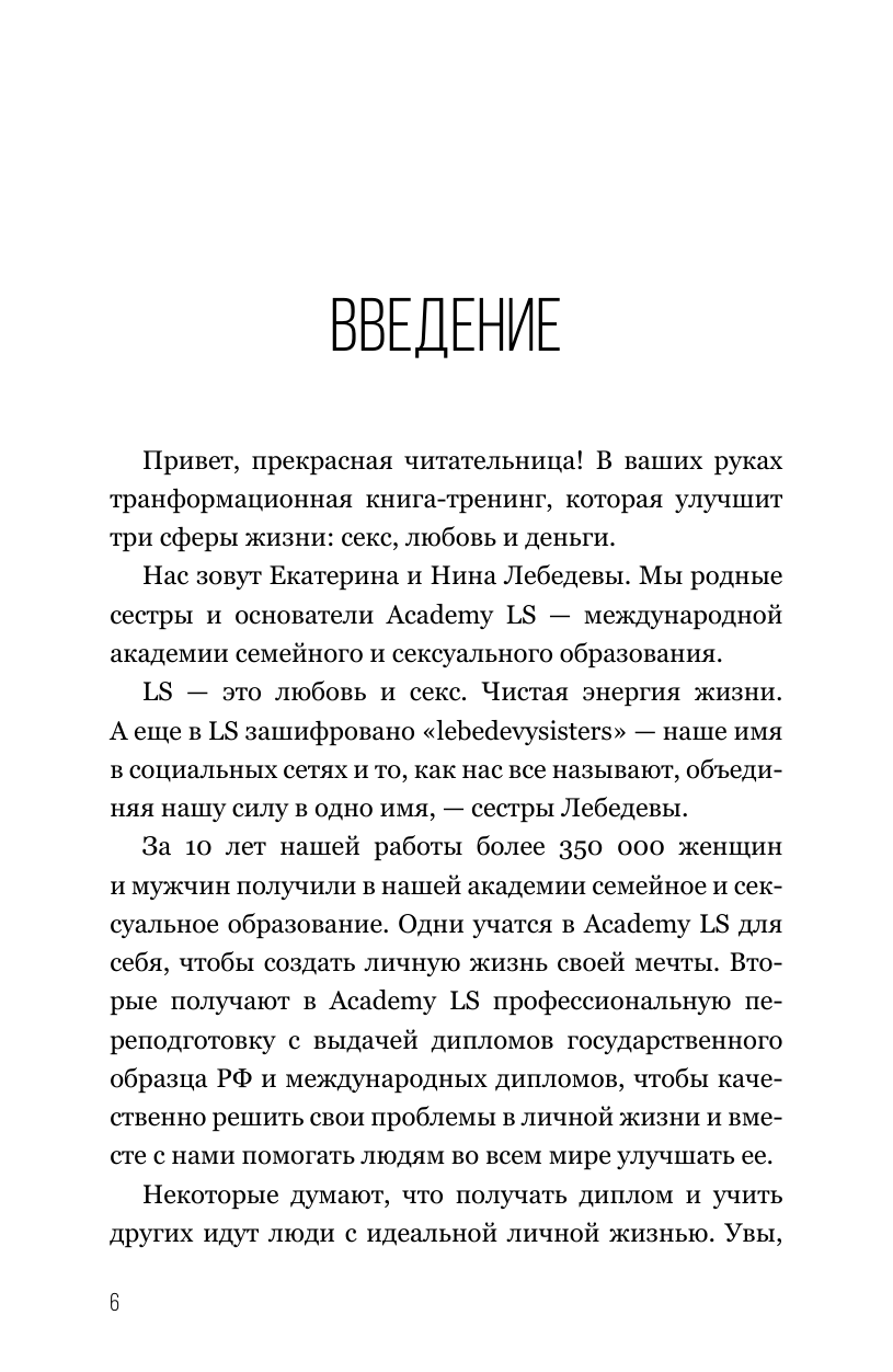 Екатерина и Нина Лебедевы – основательницы Academy LS, международной академии семейного и сексуального образования, благодаря которой более 350 000 человек создали личную жизнь своей мечты и реализовались в профессии.