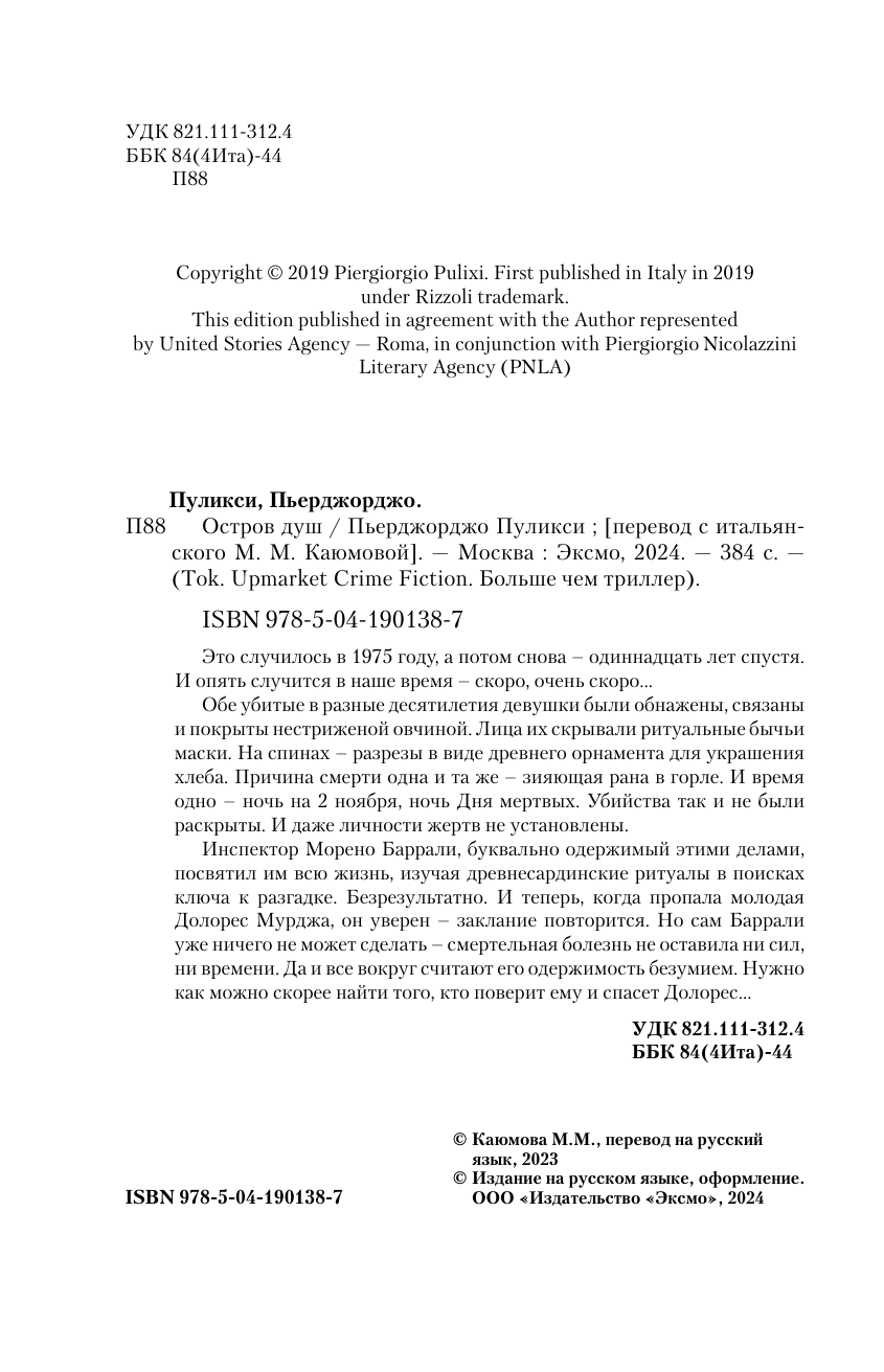Книга: Остров душ (Пьерджорджо Пулижи); Эксмо, Inspiria, Редакция 1, 2024