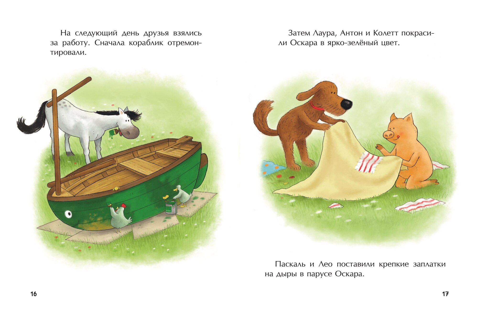 На лугу возле фермы «Под старым дубом» стоял кораблик по имени Оскар. Когда-то он ходил по морям вместе с огромными судами и видел самые большие города. А теперь кораблик состарился, его парус прохудился, а краска на борту облезла. Каждый день Оскар с нетерпением ждал, что завтра его заберут и он вновь отправится в путешествие.