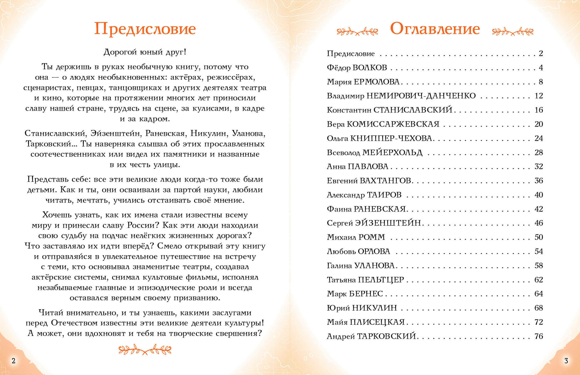 Эта книга патриотической серии «Великие люди великой страны» рассказывает о двадцати наших знаменитых соотечественниках — актёрах, режиссёрах, сценаристах, певцах, танцовщиках и других деятелях театра и кино, чьи имена навсегда останутся в истории России. Кто основал самый первый русский театр? Как цирковой клоун без профессионального образования покорил огромную страну? Какому культовому режиссёру подражают во всём мире?