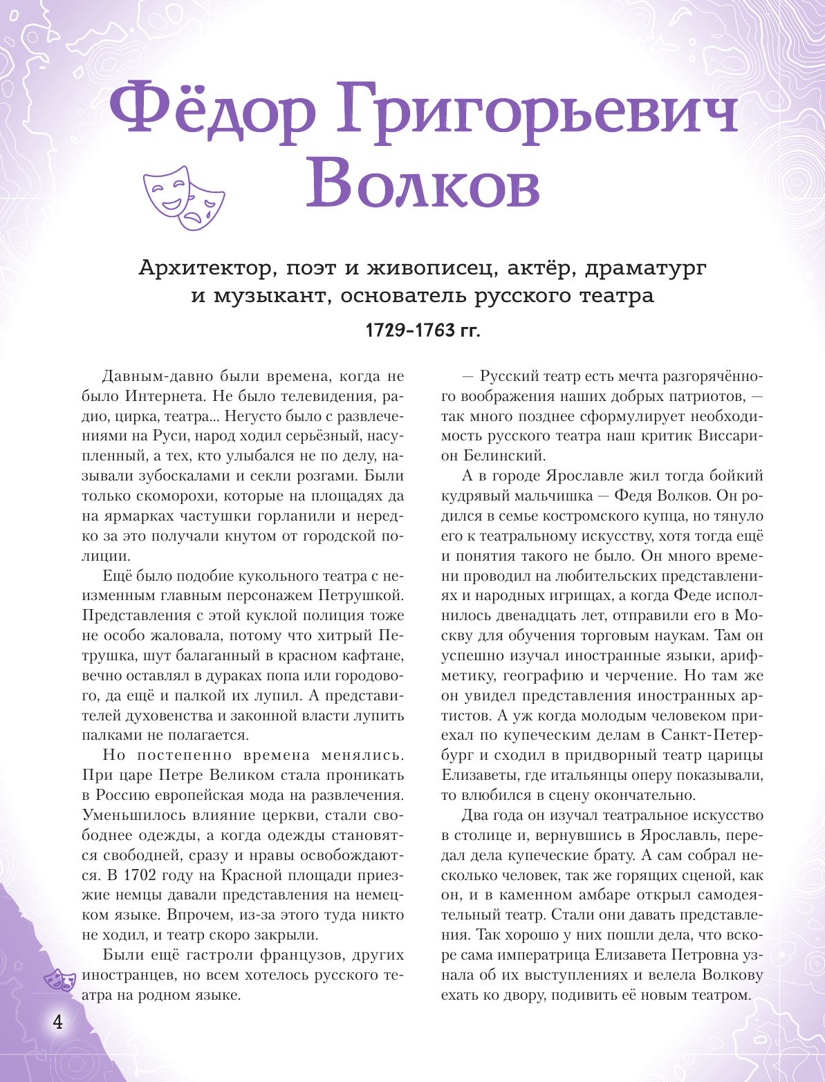 Издание предназначено для среднего школьного возраста, однако будет интересно и взрослым, а также станет неповторимым подарком по любому поводу для всех, кто любит Россию и гордится ею. Читайте всей семьёй и узнавайте всё самое интересное о великих людях нашей страны!