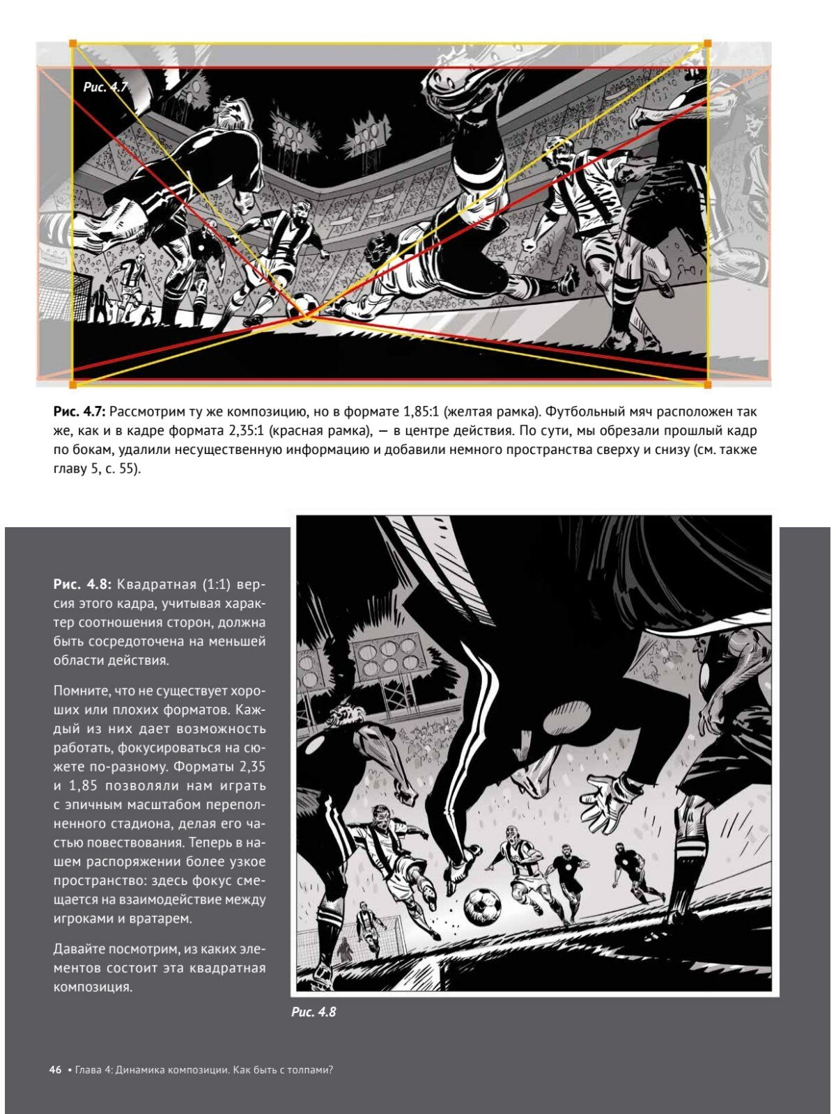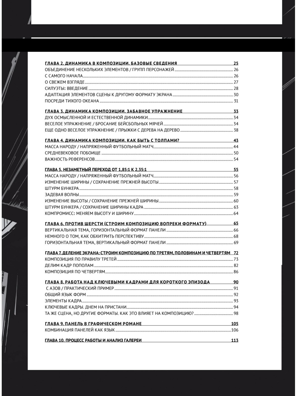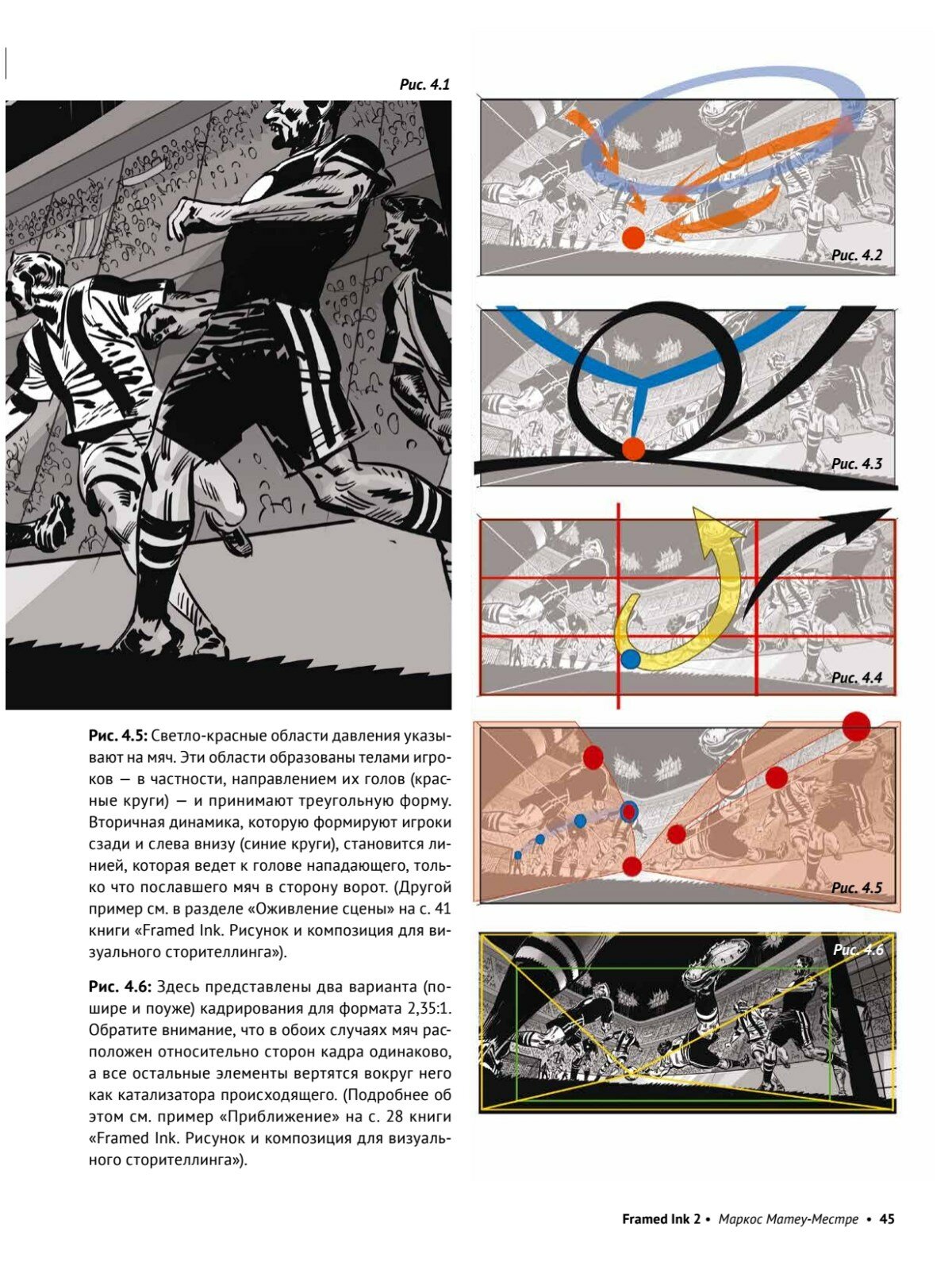 Долгожданная вторая часть «Framed Ink» посвящена важнейшему аспекту визуального сторителлинга — энергии кадра, которая позволяет эмоционально воздействовать на зрителя. Маркос Матеу-Местре рассказывает, как грамотно выстраивать кадры любого формата — пейзажного, вертикального или квадратного — и работать с такими композиционными средствами, как действие и реакция, области напряжения и расслабления, общая динамика, ритм и поворотные точки кадра. В книге на множестве наглядных примеров показано, как использовать сильные стороны разных форматов и с помощью грамотной композиции усиливать впечатление от повествования.