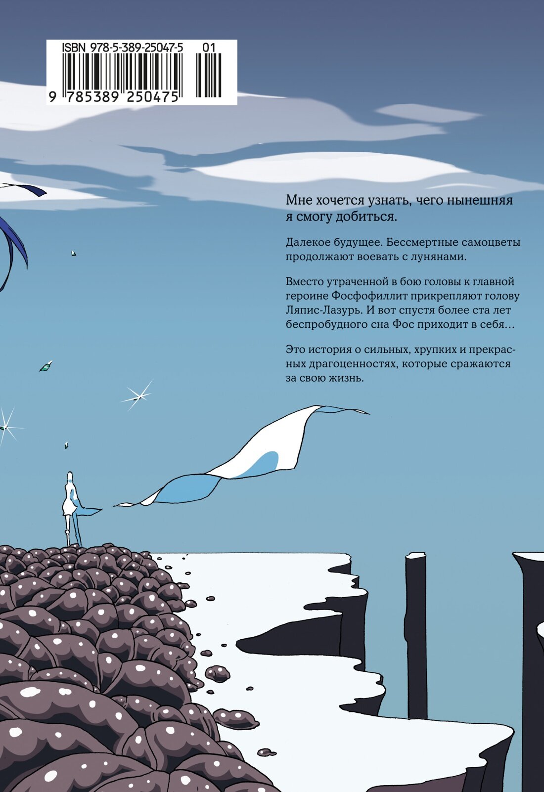 Далекое будущее. Бессмертные самоцветы продолжают воевать с лунянами. Вместо утраченной в бою головы к главной героине Фосфофиллит прикрепляют голову Ляпис-Лазурь. И вот спустя более ста лет беспробудного сна Фос приходит в себя… Это история о сильных, хрупких и прекрасных драгоценностях, которые сражаются за свою жизнь. В четвертую книгу вошли главы 45–61, а также две бонусные истории.
