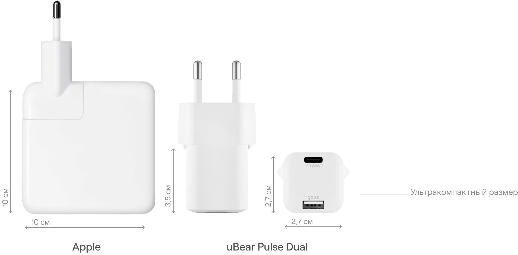 uBear Wall charger Pulse 2 - ультракомпактное зарядное устройство нового поколения, которое дарит вам максимум возможностей. Заряжайте одновременно два гаджета с впечатляющей мощностью до 30 Вт.