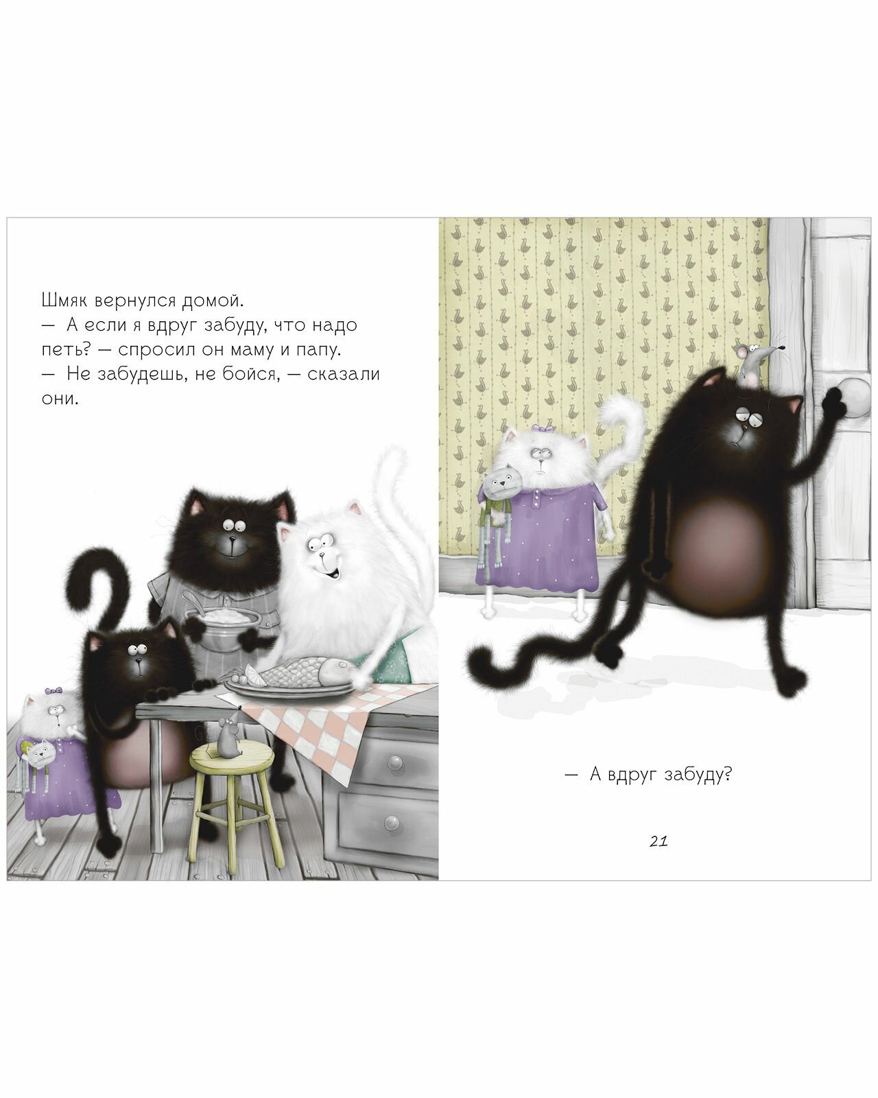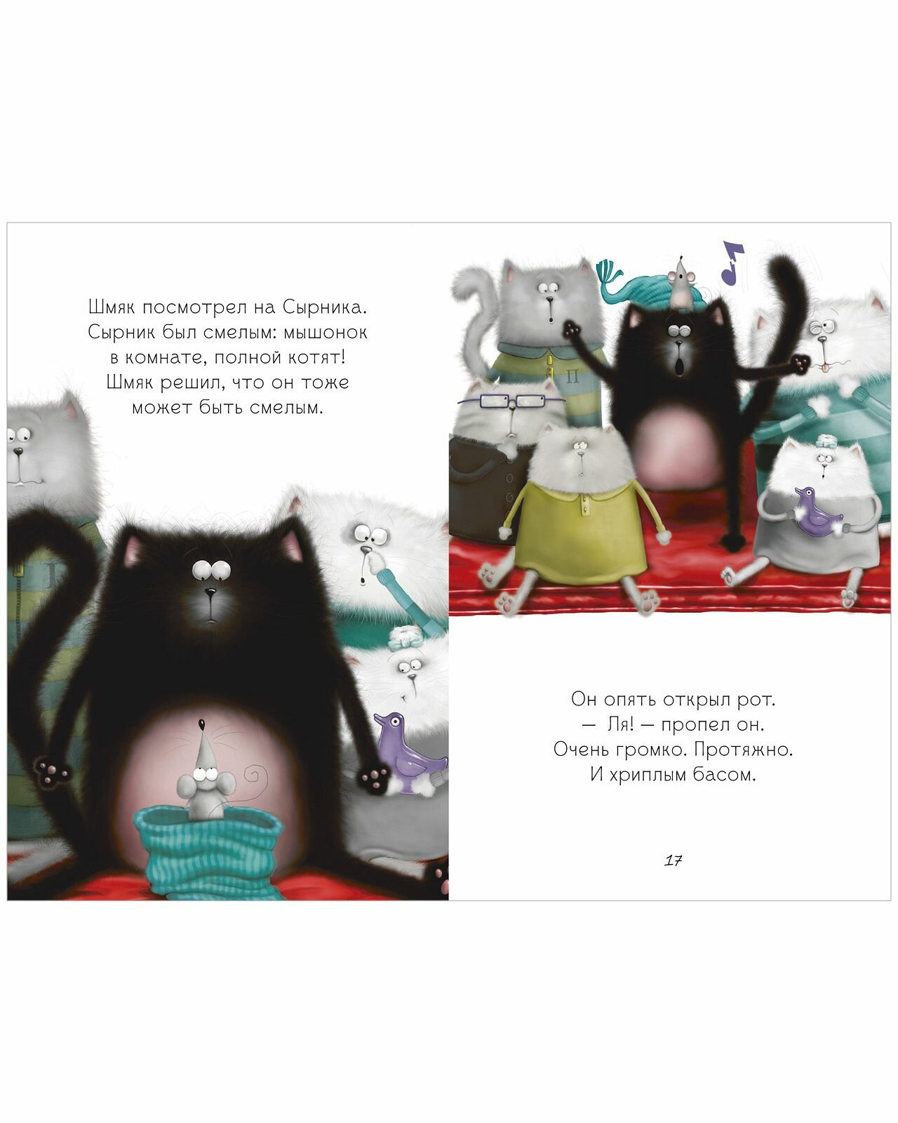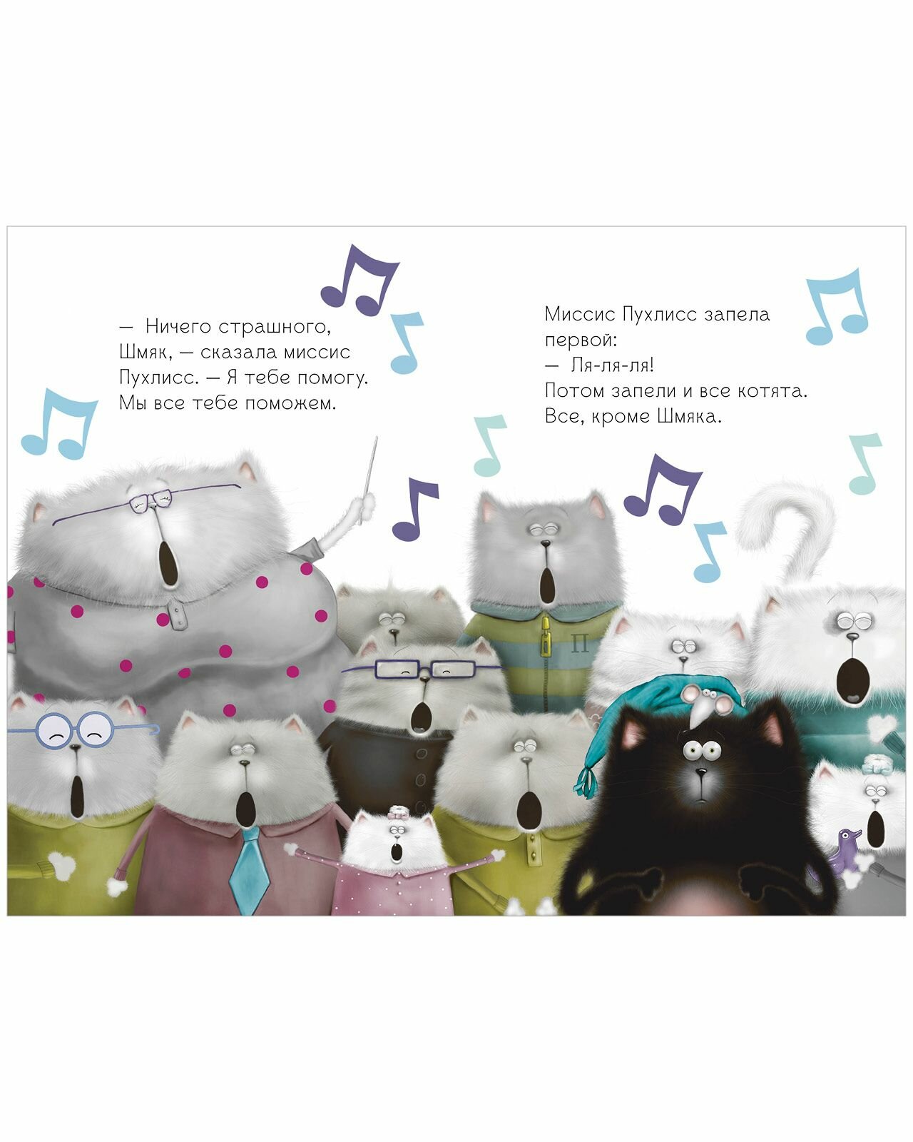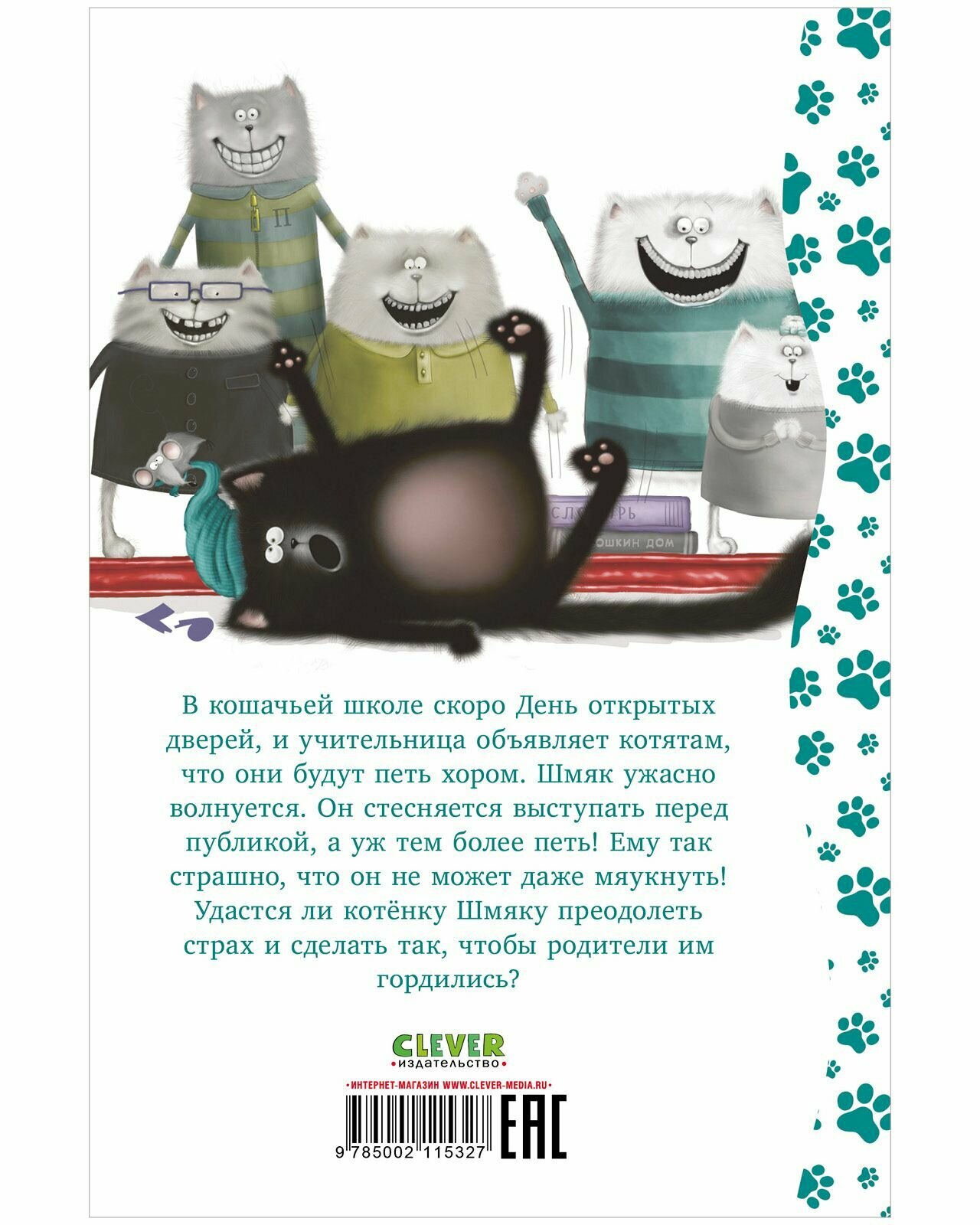 В кошачьей школе скоро День открытых дверей, и учительница объявляет котятам, что они будут петь хором. Шмяк ужасно волнуется. Он стесняется выступать перед публикой, а уж тем более петь! Ему так страшно, что он не может даже мяукнуть! Удастся ли котёнку Шмяку преодолеть страх и сделать так, чтобы родители им гордились?