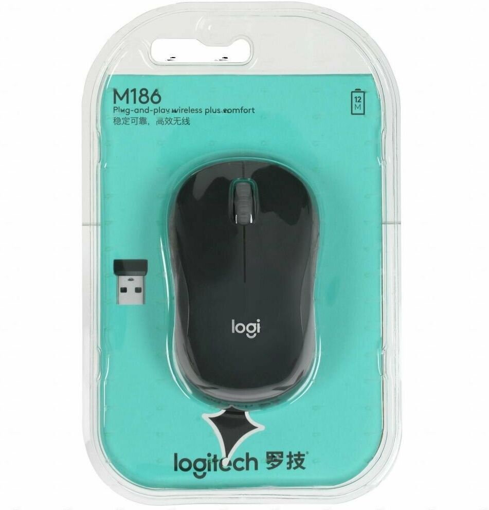 Мышь Wireless Logitech 910-004131 черный/серый оптическая (1000dpi) USB2.0 для ноутбука (2but) M186