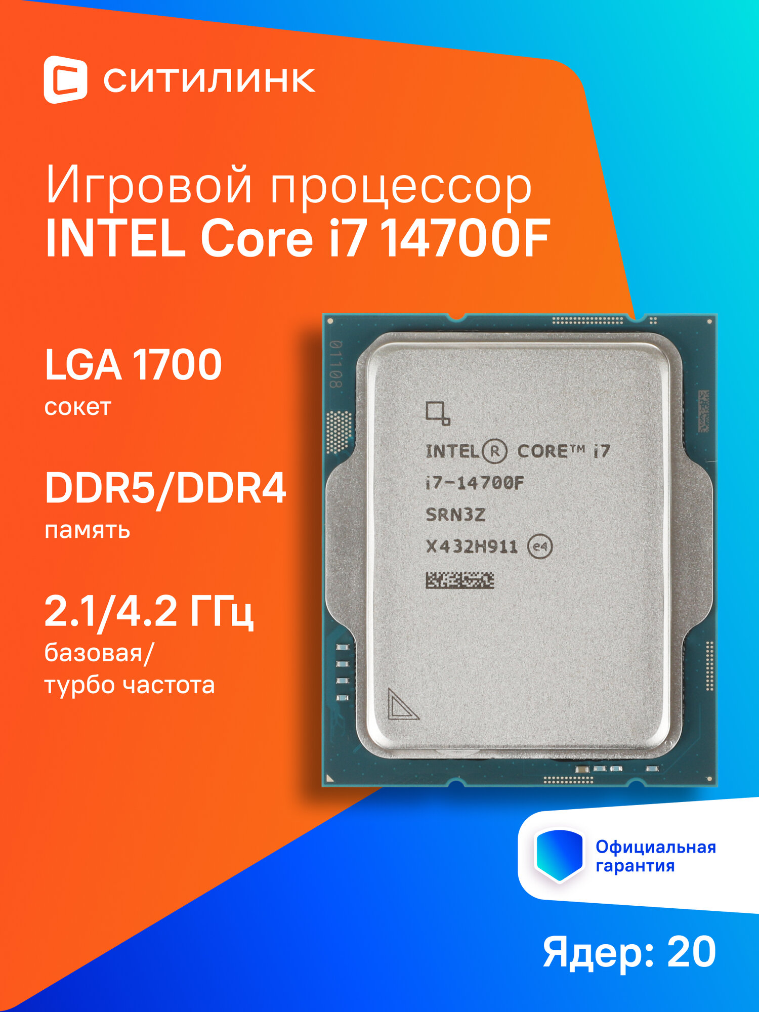 | Процессор Intel Core i7-14700F стал обладателем 20 ядер | 8 производительных и 12 энергоэффективных. Такая конфигурация позволит чипсету безупречно справляться с запуском ресурсоемких программ, не забывая при этом про работу определенного софта в фоновом режиме. Способность обрабатывать до 28 вычислительных потоков пригодится для тяжелых программ. Техпроцесс Intel 7 позволит понизить энергопотребление модели при возросшей производительности. |