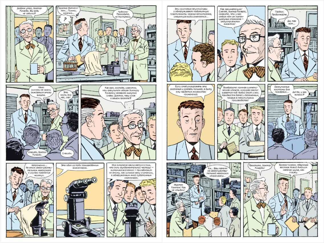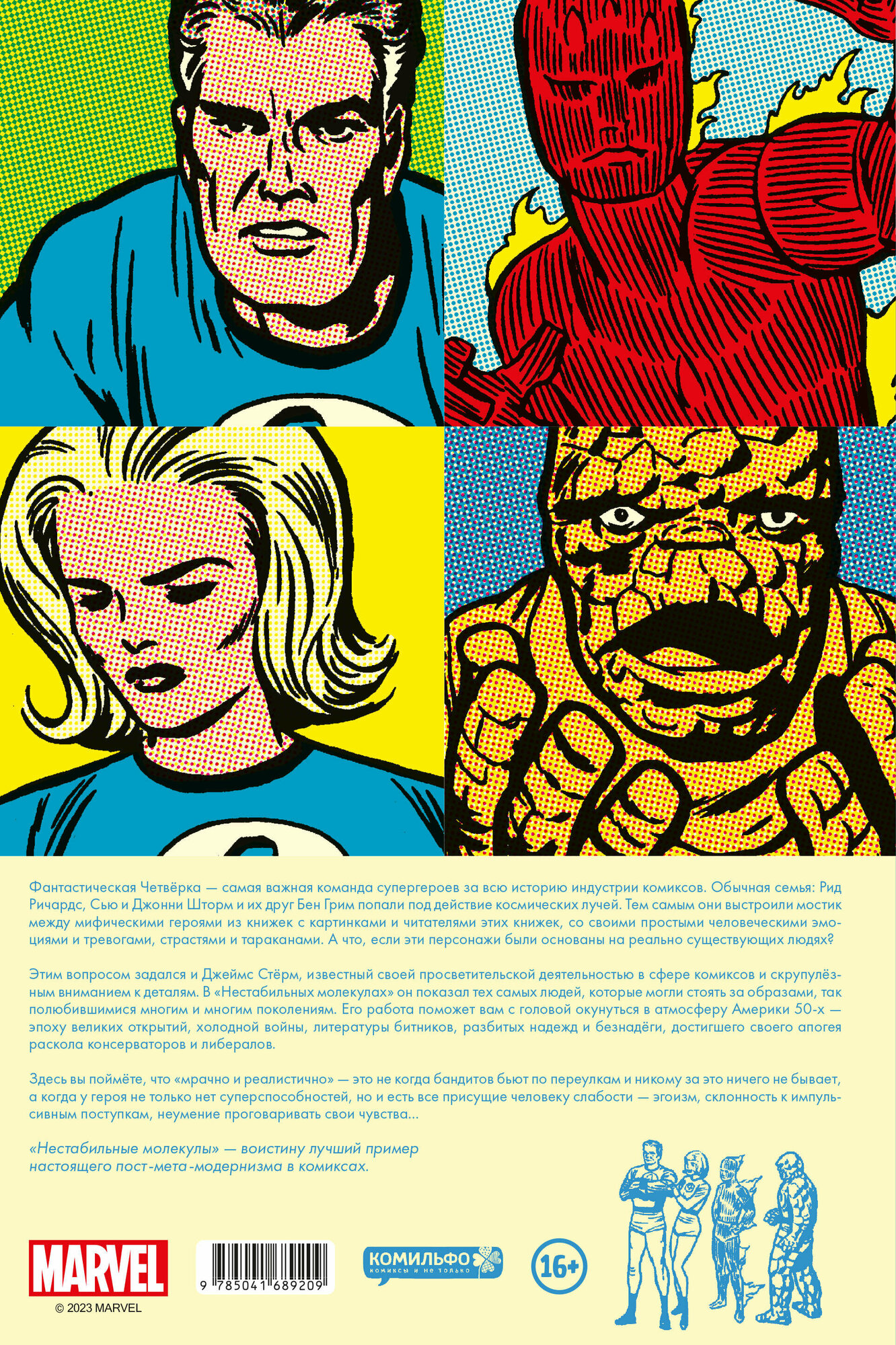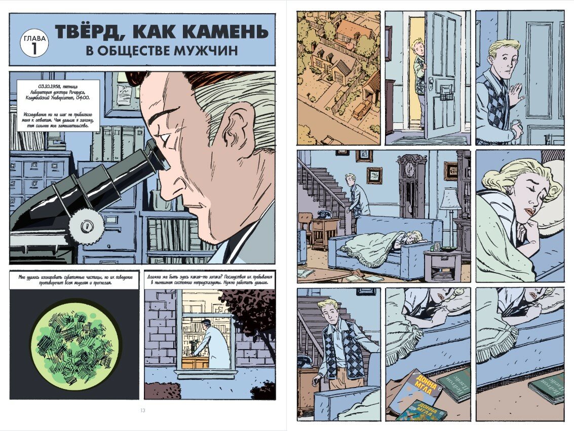 Этим вопросом задался и Джеймс Стёрм, известный своей просветительской деятельностью в сфере комиксов и скрупулёзным вниманием к деталям. В «Нестабильных молекулах» он показал тех самых людей, которые могли стоять за образами, так полюбившимися многим и многим поколениям. Его работа поможет вам с головой окунуться в атмосферу Америки 50-х —