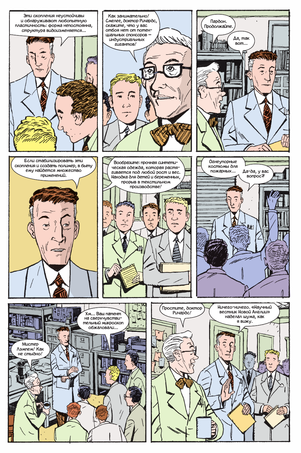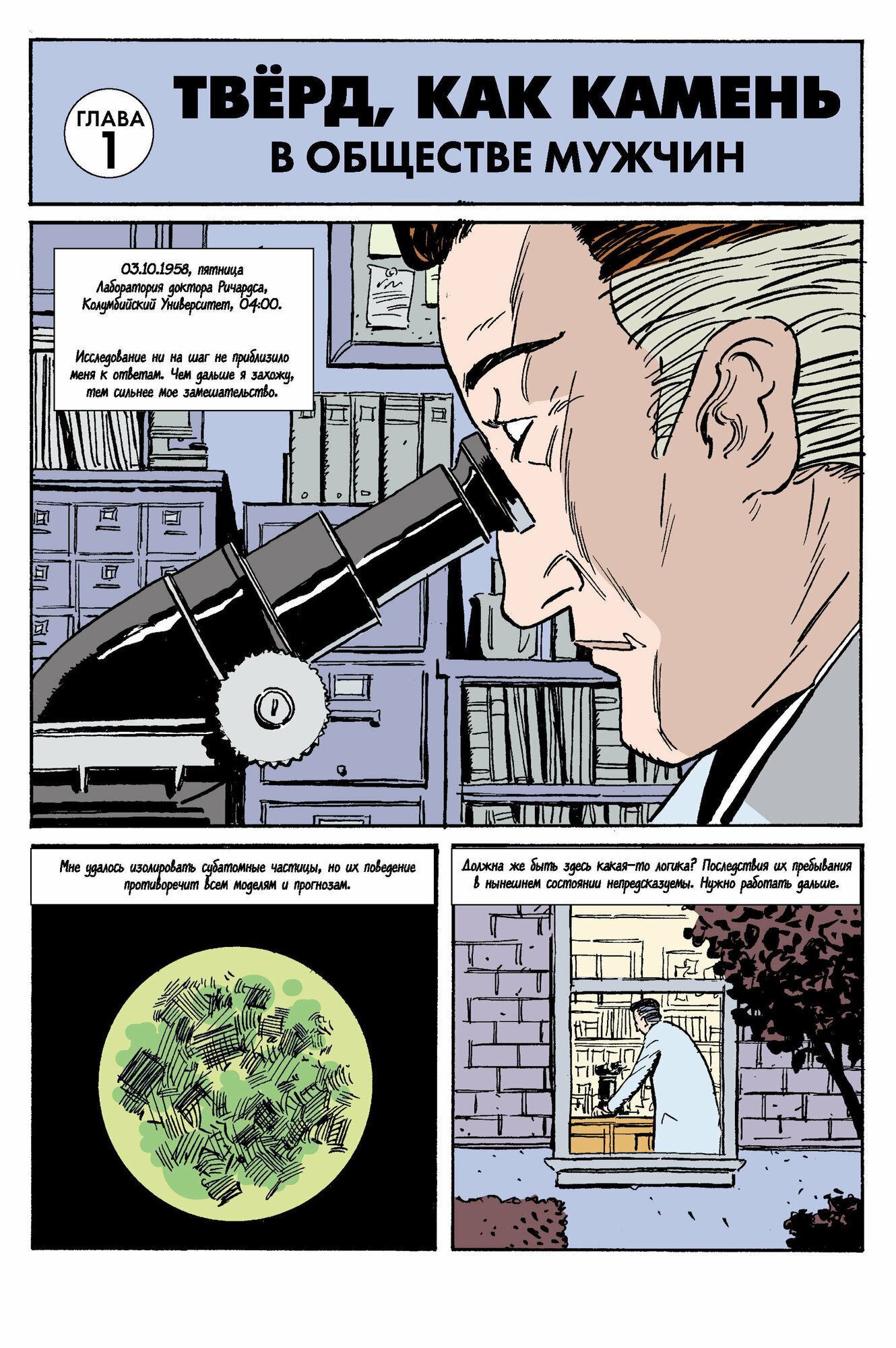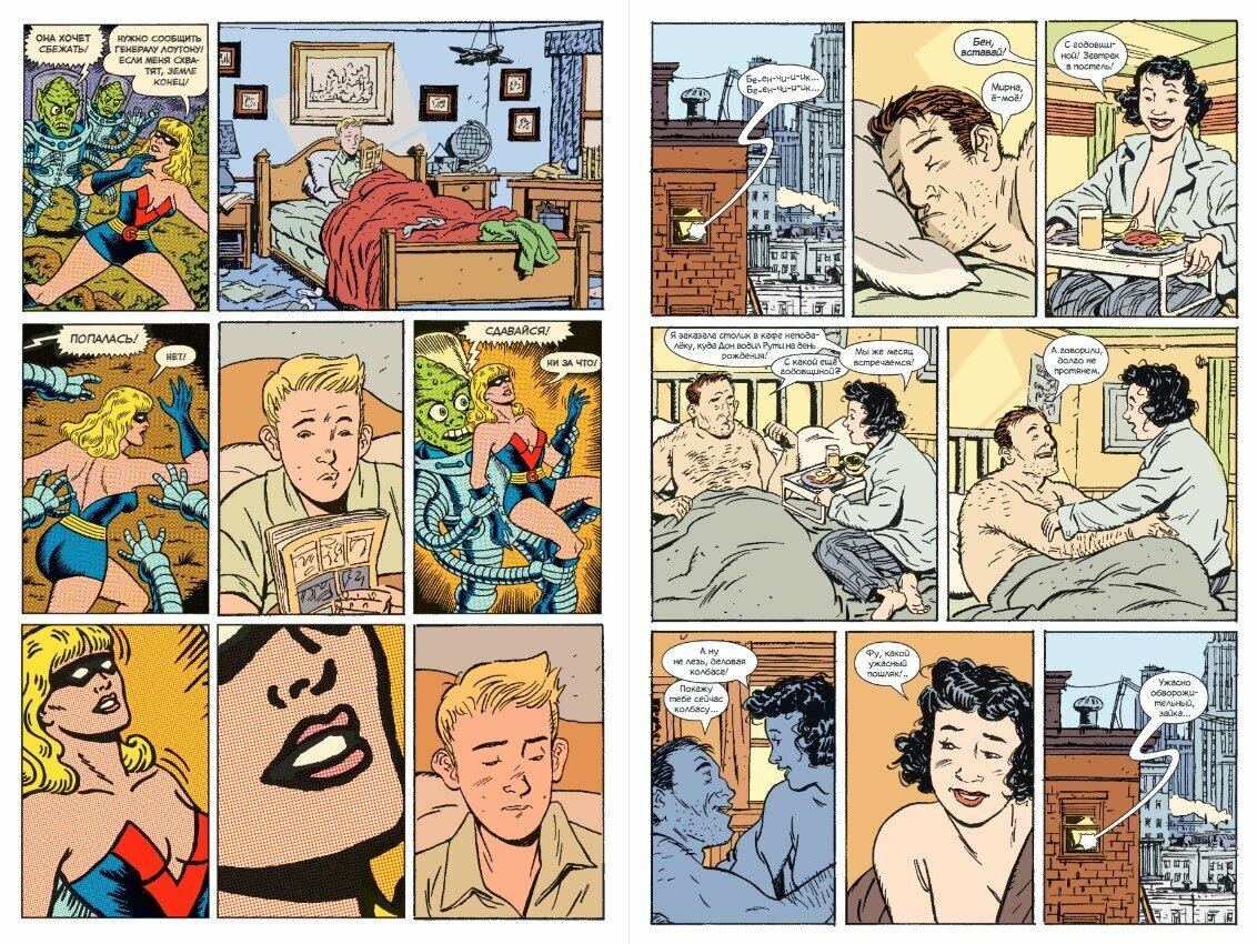 Этим вопросом задался и Джеймс Стёрм, известный своей просветительской деятельностью в сфере комиксов и скрупулёзным вниманием к деталям. В «Нестабильных молекулах» он показал тех самых людей, которые могли стоять за образами, так полюбившимися многим и многим поколениям. Его работа поможет вам с головой окунуться в атмосферу Америки 50-х —