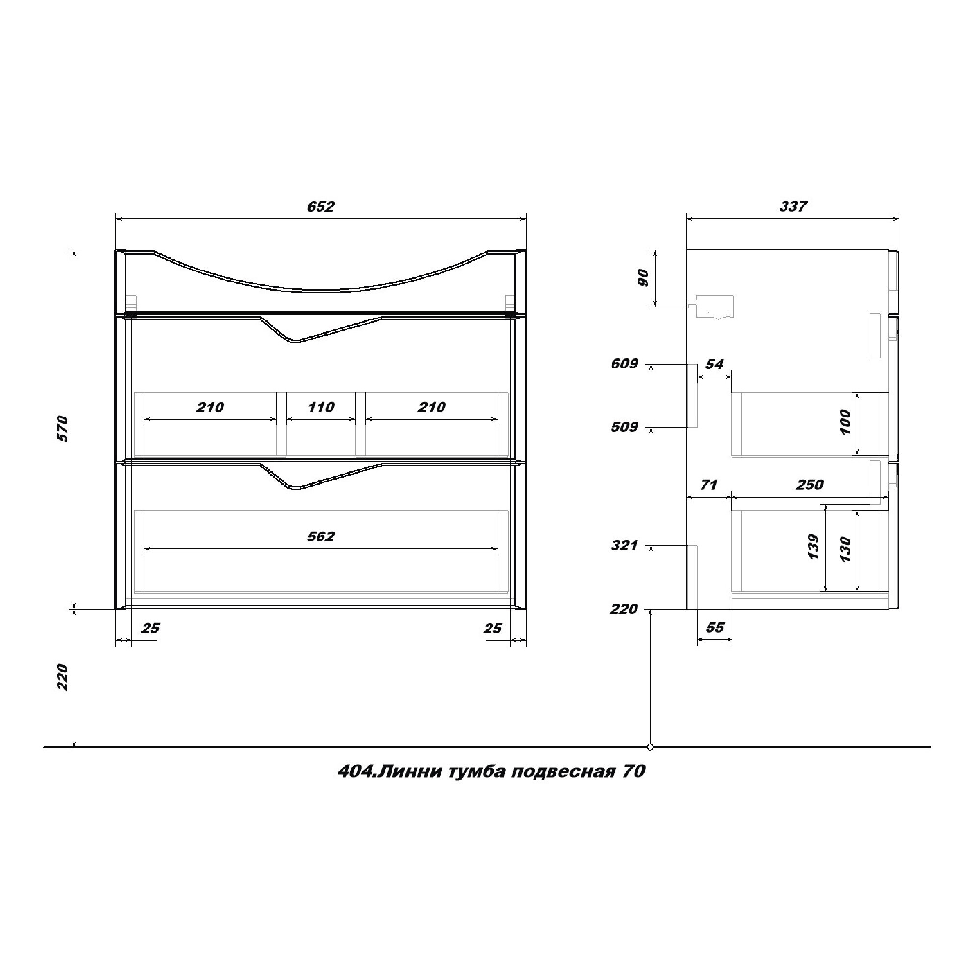 - Габариты корпуса тумбы (ШхВхГ): 652х570х337 мм.