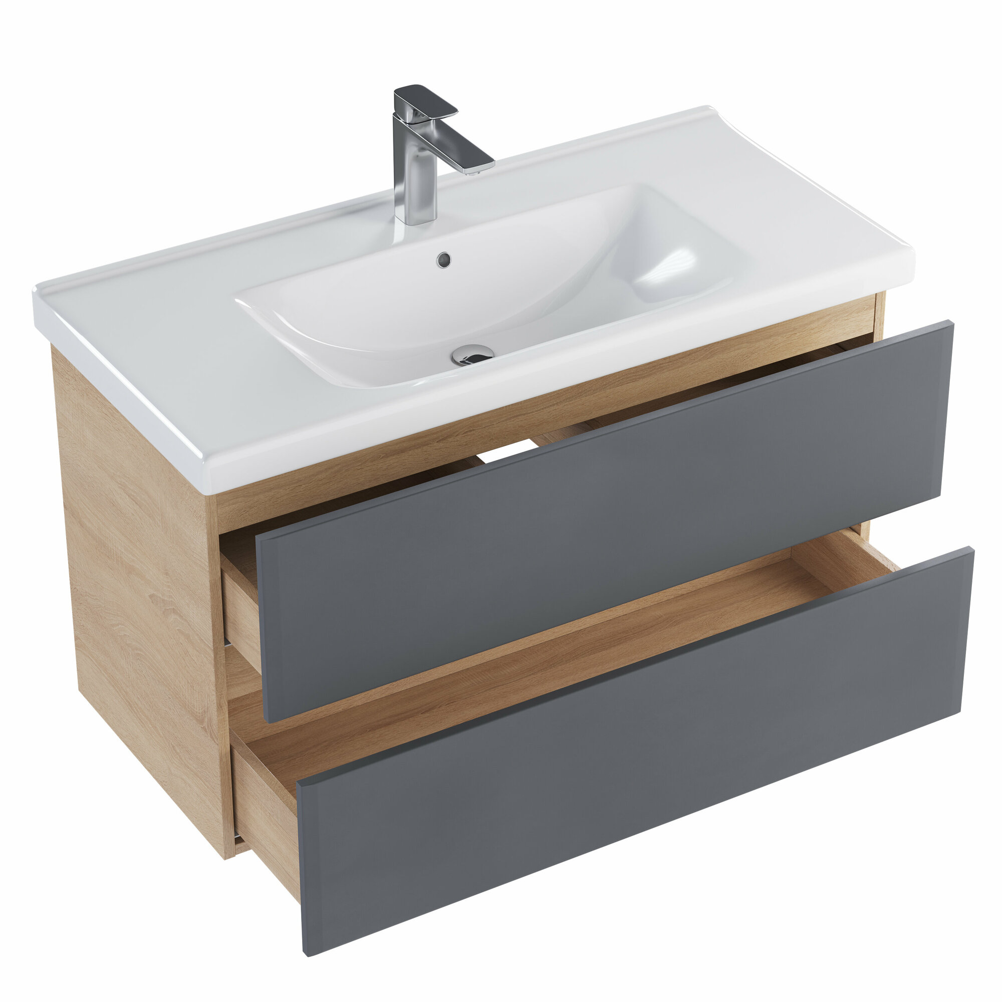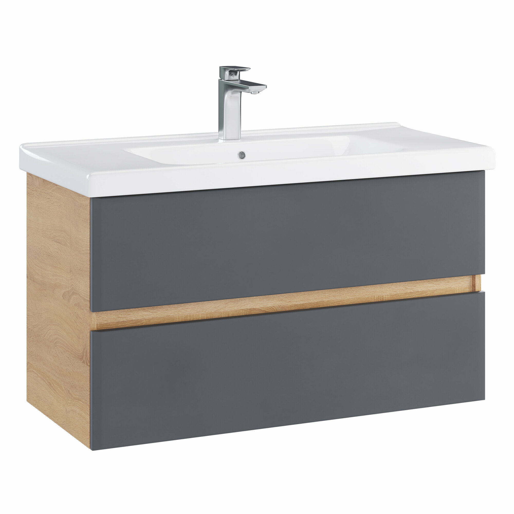 Тумба под раковину Sanstar Инфинити 100 412.1-1.4.1. подвесная Графит софт Дуб сонома светлый