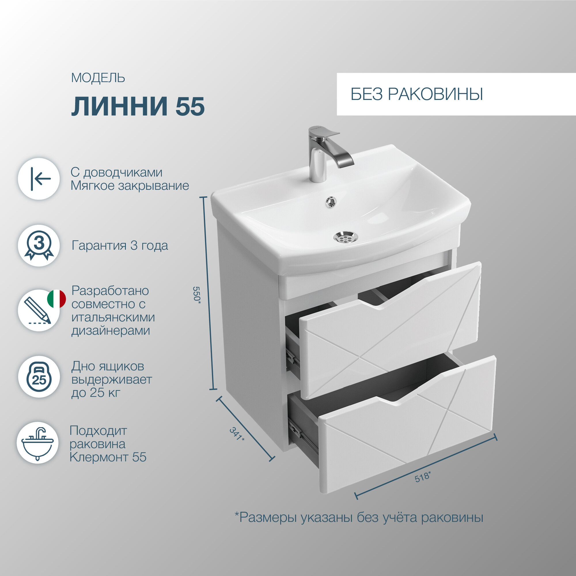 Тумба под раковину Sanstar Линни 55 401.1-1.4.1. подвесная Белая