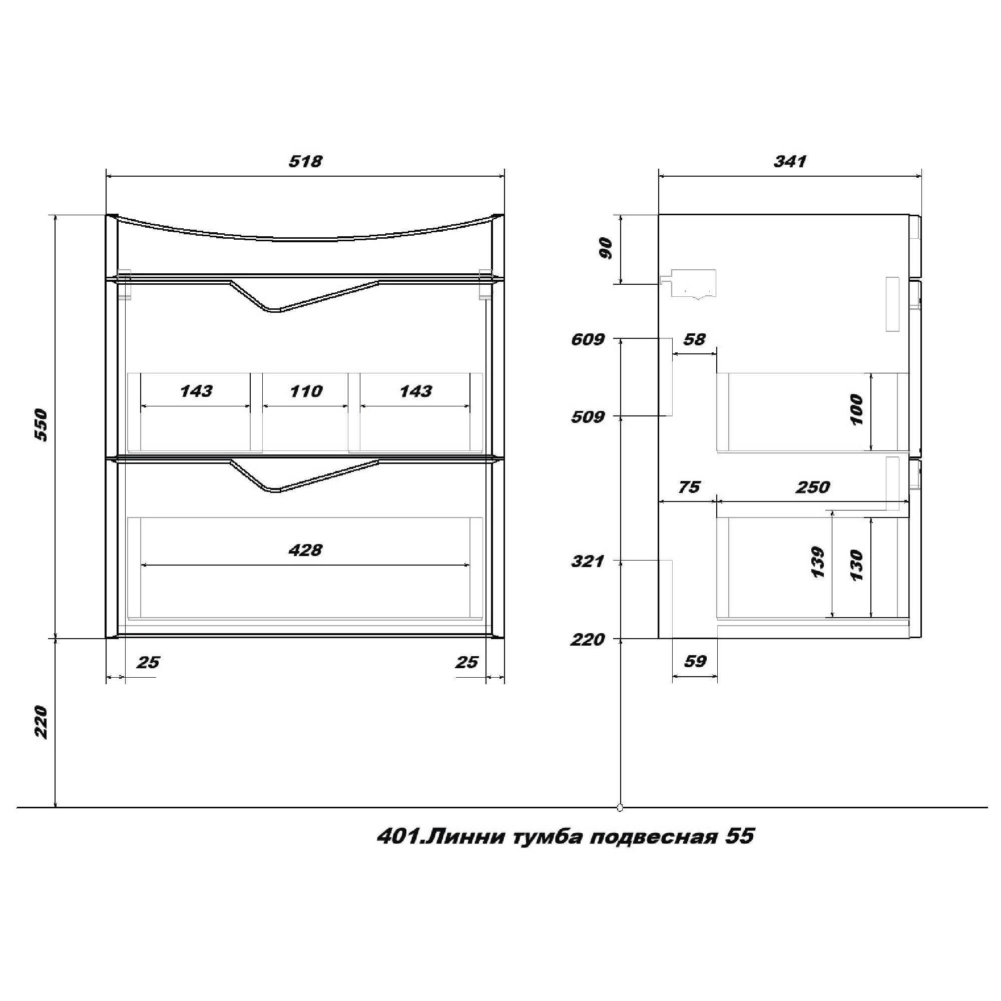 - Габариты корпуса тумбы (ШхВхГ): 518х550х341 мм.