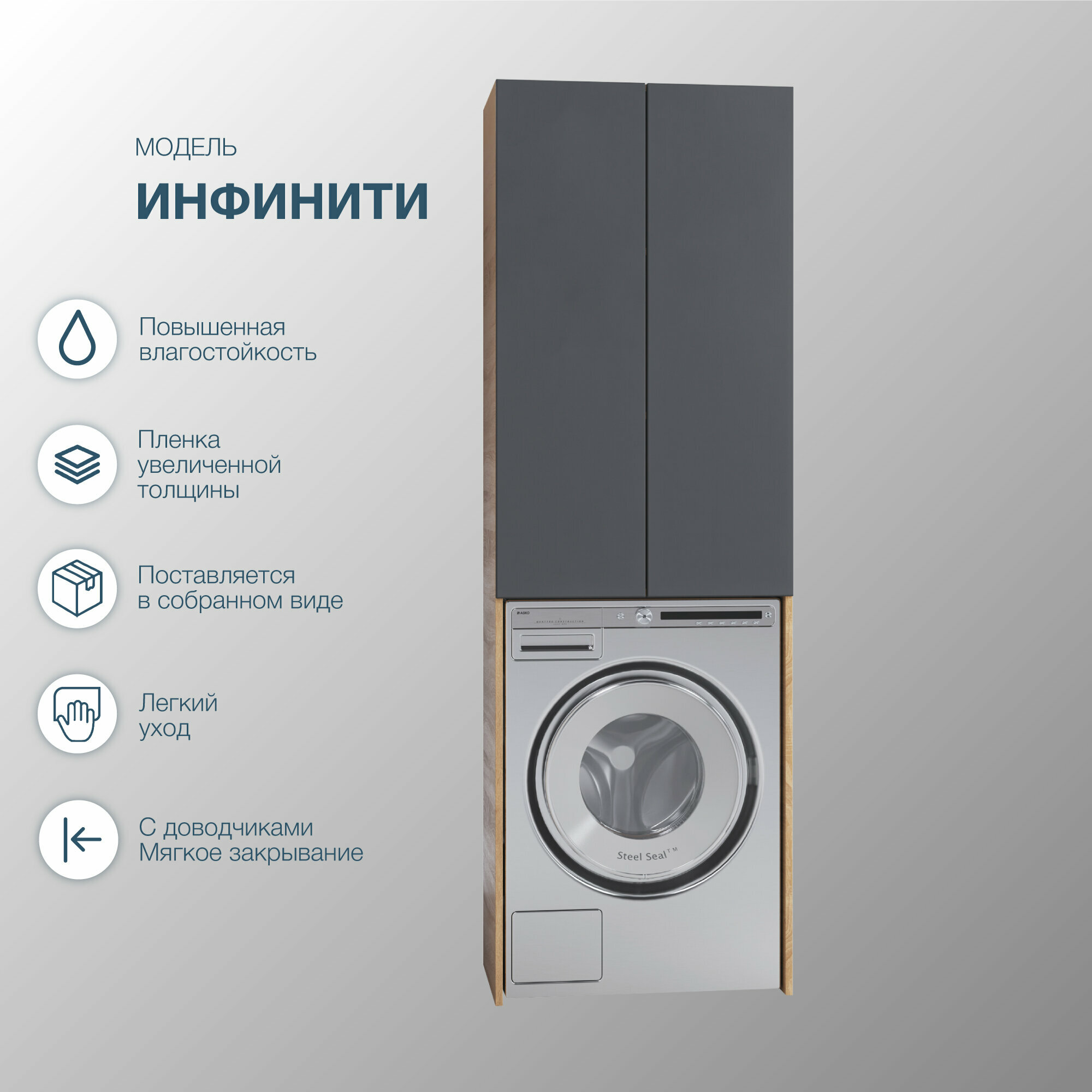 Модель: Инфинити 65 418.1-3.4.1. над стиральной машиной Графит софт Дуб сонома светлый
