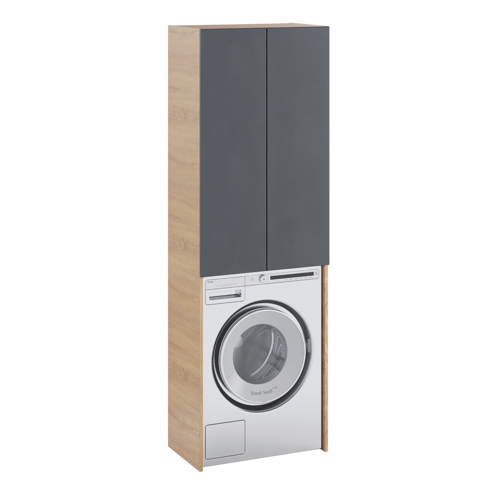 Шкаф пенал Sanstar Инфинити 65 418.1-3.4.1. над стиральной машиной Графит софт Дуб сонома светлый