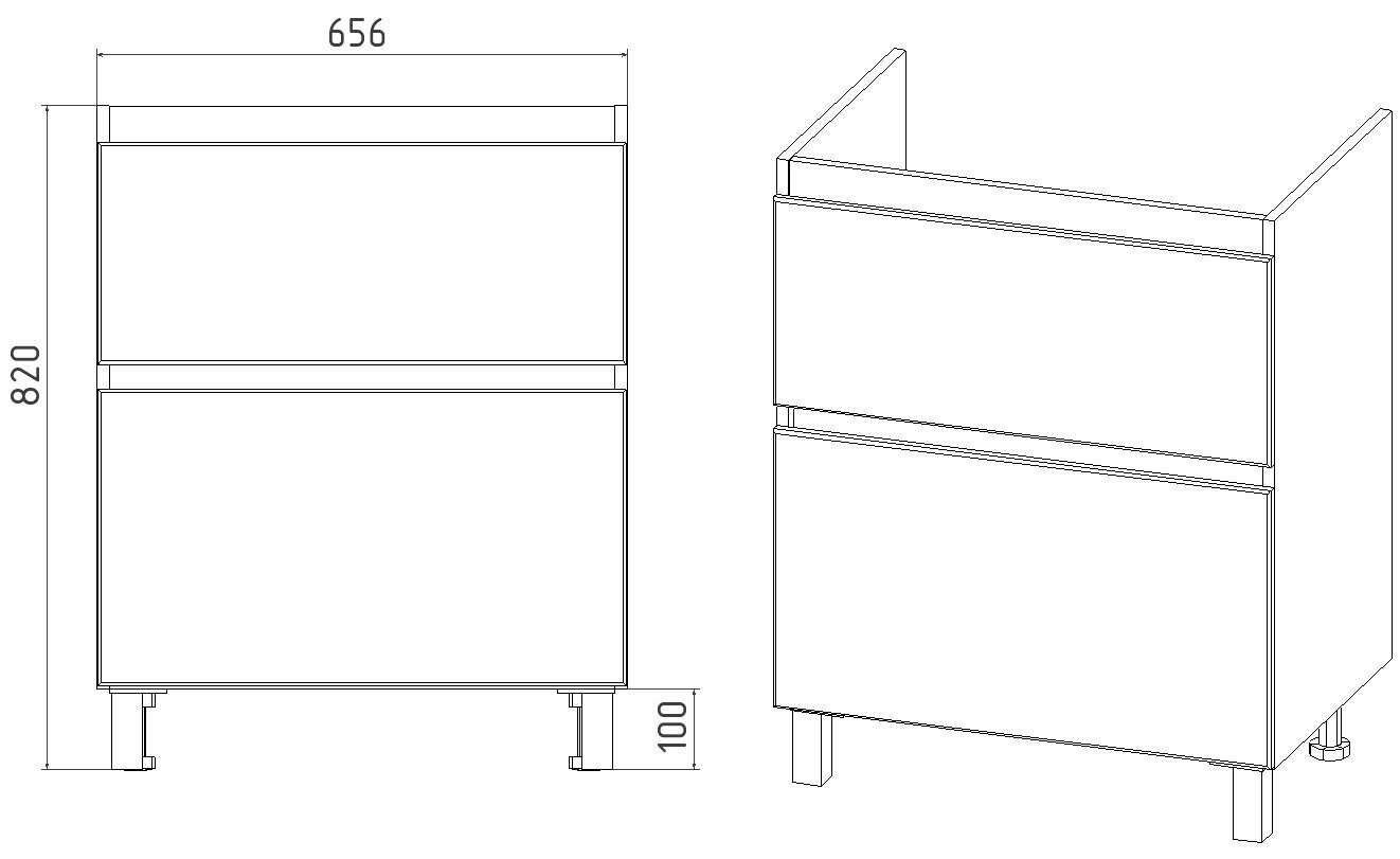- Габариты корпуса тумбы (ШхВхГ): 656х820х425 мм.