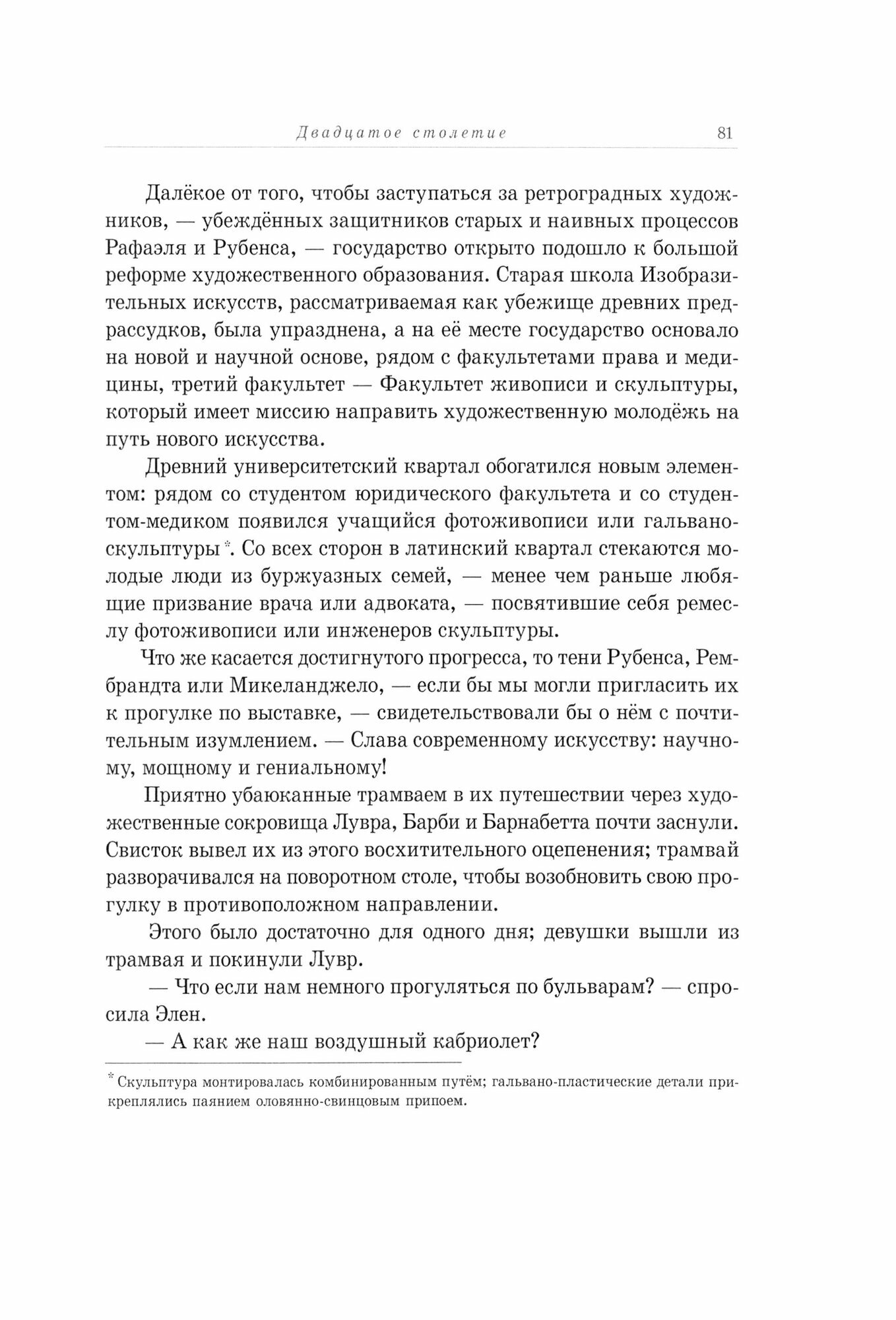 Книга французского писателя и художника Альбера Робиды "Двадцатое столетие" - настоящая жемчужина фантасмагоричной "технической утопии" конца XIX века, фантастический, пронизанный искрометным юмором, взгляд на образ будущего мира - порою гротескный, но во многом пророческий. Именно из этих утопий в 20-х годах XX века зародится научная фантастика. "Двадцатое столетие" является первой книгой трилогии футуристических романов цикла "XX век", включающей в себя книги "Двадцатое столетие", "Электрическая жизнь" и альбом "Война в ХХ-м веке". Благодаря этим романам автор считается предтечей стимпанка. Перед вами почти репринтное издание в новом переводе на русский язык первого романа этой трилогии Le Vingtieme Siecle ("XX столетие", 1883 год). Книга включает в себя полный комплект иллюстраций автора из первого французского издания.
