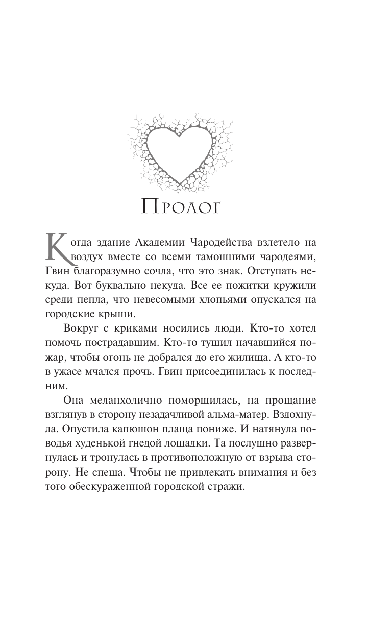 Когда здание Академии Чародейства взлетает на воздух со всеми чародеями, магичка Гвин отправляется в захолустное королевство Нордвуд, чтобы отыскать там мужа. Девушка использует свою магию, чтобы помогать всем, кого встречает на своем пути, а заодно открывать все новые и новые тайны Нордвуда. Но неожиданно одной из таких тайн становится ее собственное сердце — Гвин без памяти влюбляется в загадочного оборотня…