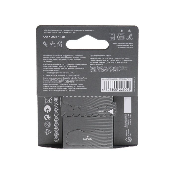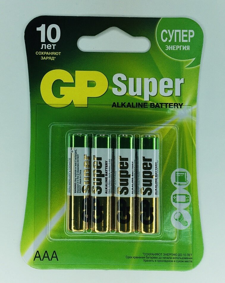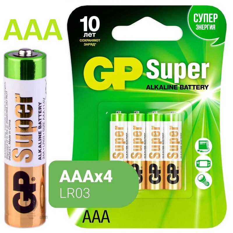 Батарейки ААА мизинчиковые алкалиновые GP G-TECH 24AUPA, LR03, набор 4 штНовый экологичный дизайн бумажной упаковки позволяет свести к минимуму использование пластика и обеспечивает удобство хранения. Благодаря использованию порошка Zinc S высокой плотности и многокольцевому сердечнику из графита высокой чистоты, батарейки GP G-Tech обеспечивают стабильную работу и длительное время использования.Каждая батарейка производится с соблюдением всех международных требований к качеству.В упаковке содержатся четыре алкалиновые батарейки, их хватит сразу на несколько устройств, нуждающихся в электропитании.Выбирая батарейки GP G-TECH 24AUPA, вы получаете не только качественные батарейки, но и заботу об окружающей среде.