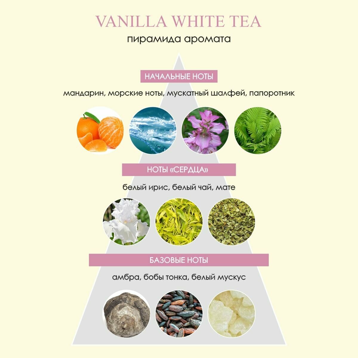 Нежный и невесомый аромат белого чая, словно дуновение летнего ветерка, ласкающего кожу своей теплотой, изящно обрамлен уютной и мягкой нотой ванили, создавая атмосферу спокойствия и гармонии, идеально подходящую для повседневного использования.Этот аромат идеально подойдет для женщин, которые ценят гармонию и спокойствие, и хотят подчеркнуть свою нежность и женственность. Он станет незаменимым спутником в повседневной жизни, помогая справиться со стрессом и создавая атмосферу уюта и комфорта.Направление аромата: цветочные, мускусные, древесные.Пирамида аромата:Верхние ноты: мандарин, морские ноты, мускатный шалфей, папоротник;Ноты сердца: белый ирис, белый чай, мате;Базовые ноты: амбра, бобы тонка, белый мускус.