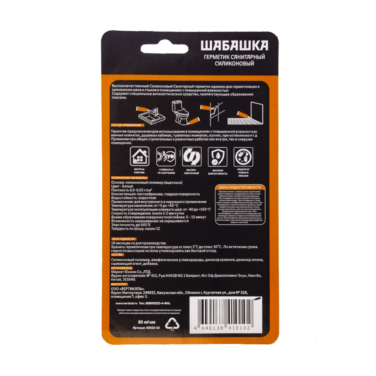 Герметик силиконовый Шабашка санитарный прозрачный 85 мл